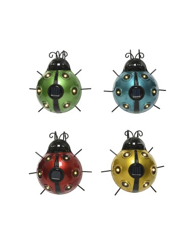 Luz solar metalica con forma de mariquita 14,5x13x5cm modelos surtidos bateria incluida, 6 leds, 1,2v, 6 horas de funcionamiento