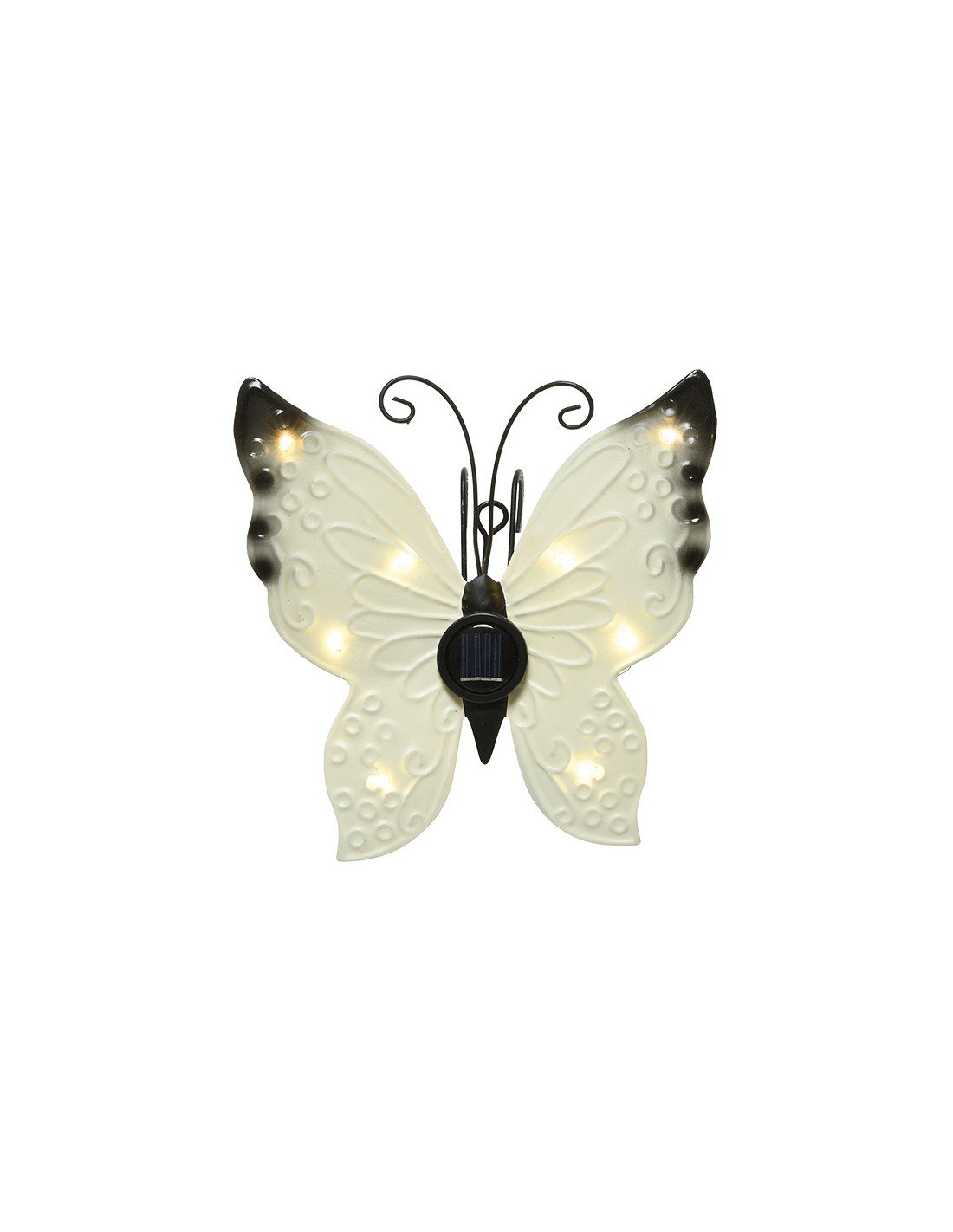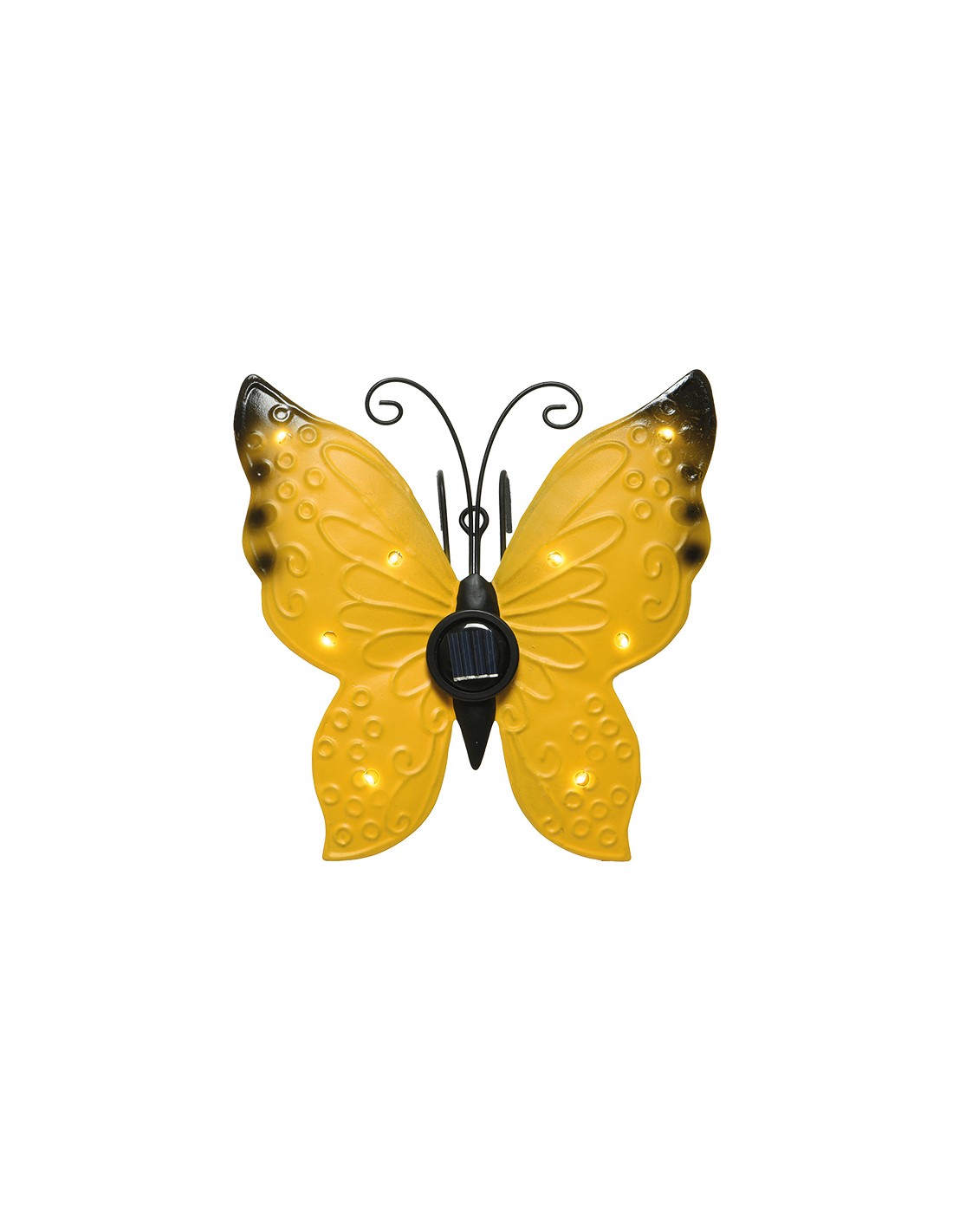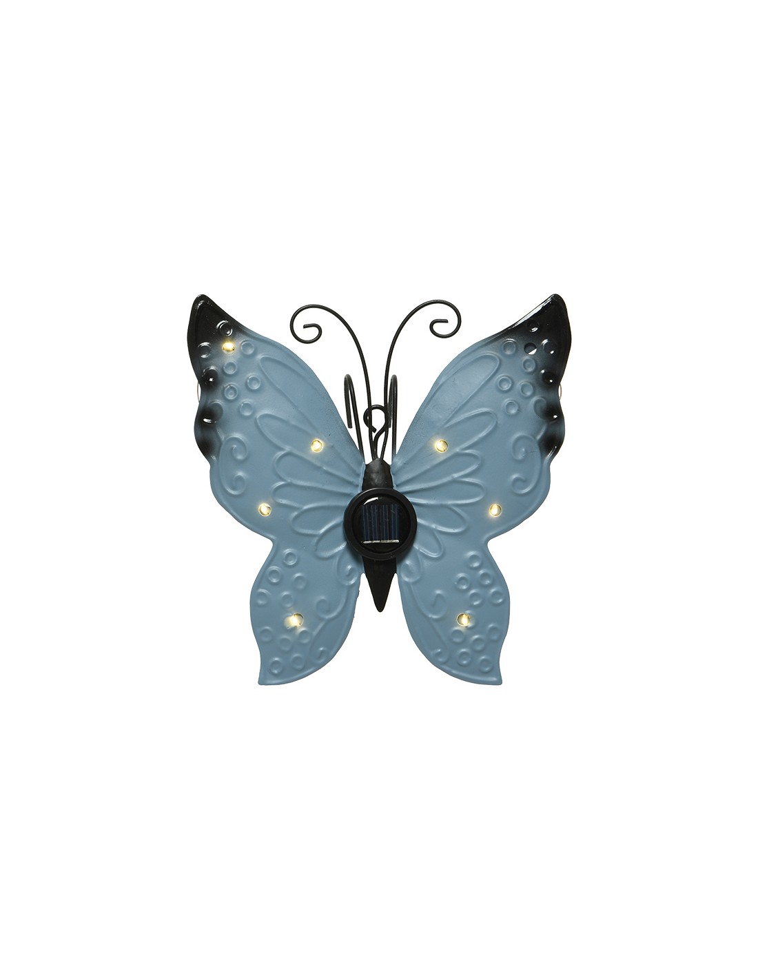 Luz solar metalica con forma de mariposa 17,8x6x4cm colores surtidos. bateria incluida, 8 leds, 1,2v, 6 horas de funcionamiento.
