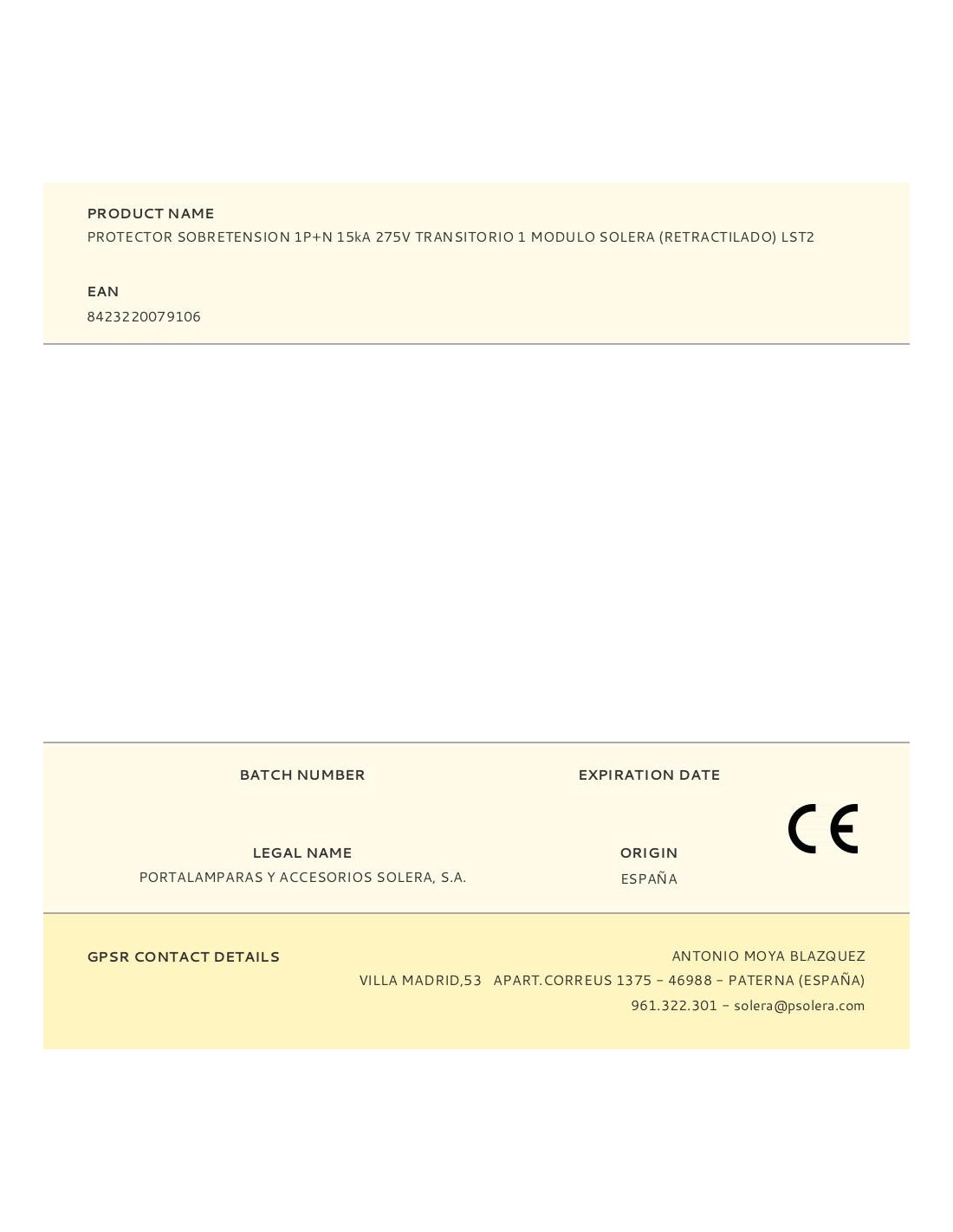 Protector sobretension 1p+n 30ka 275v transitorio 1 modulo solera (retractilado) lst2