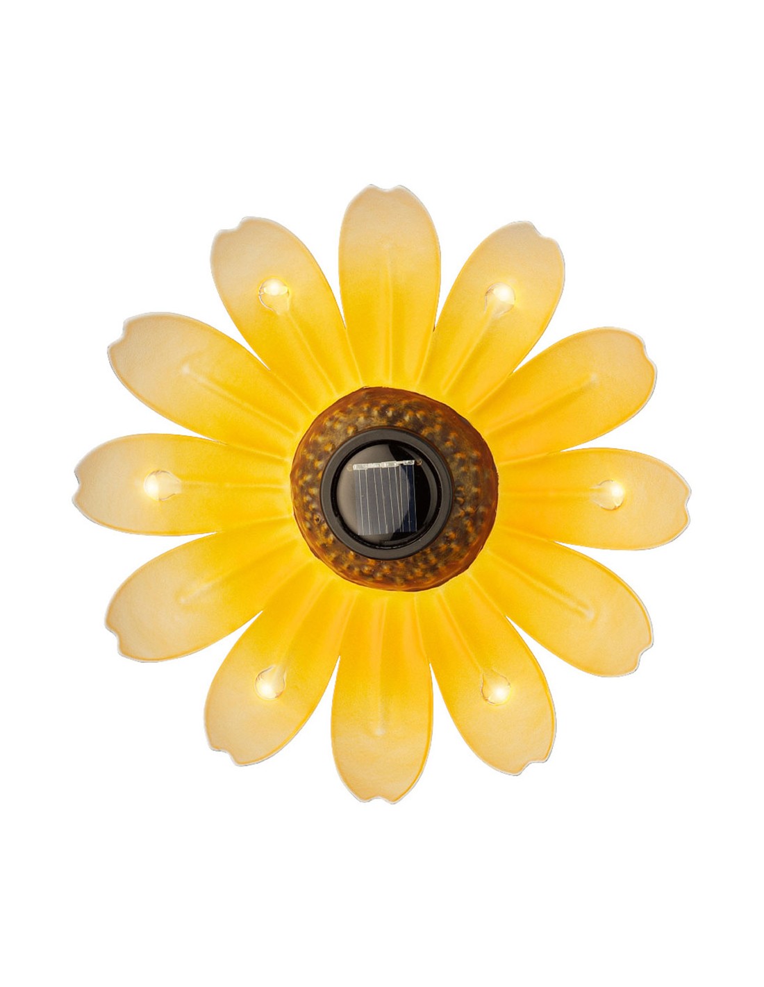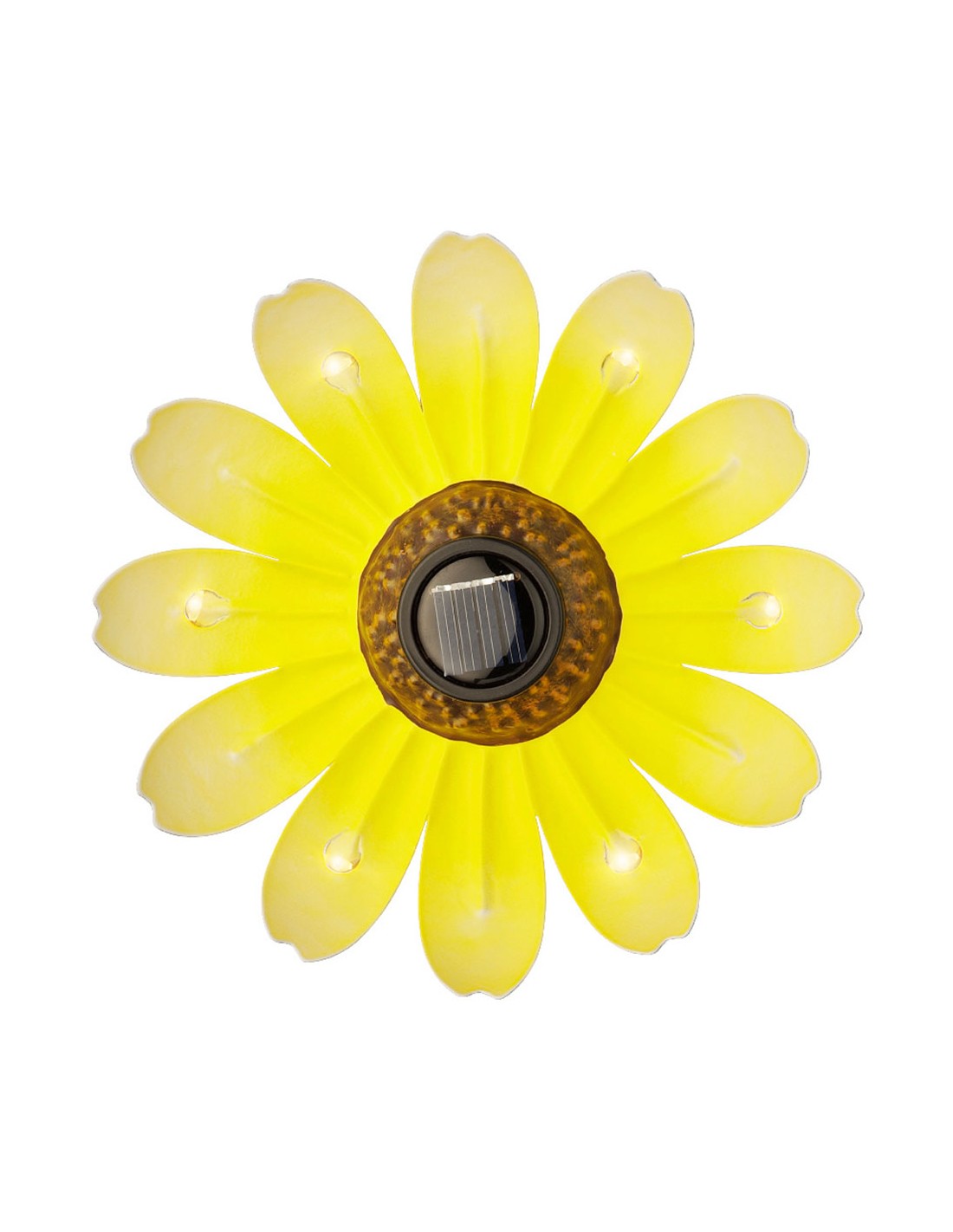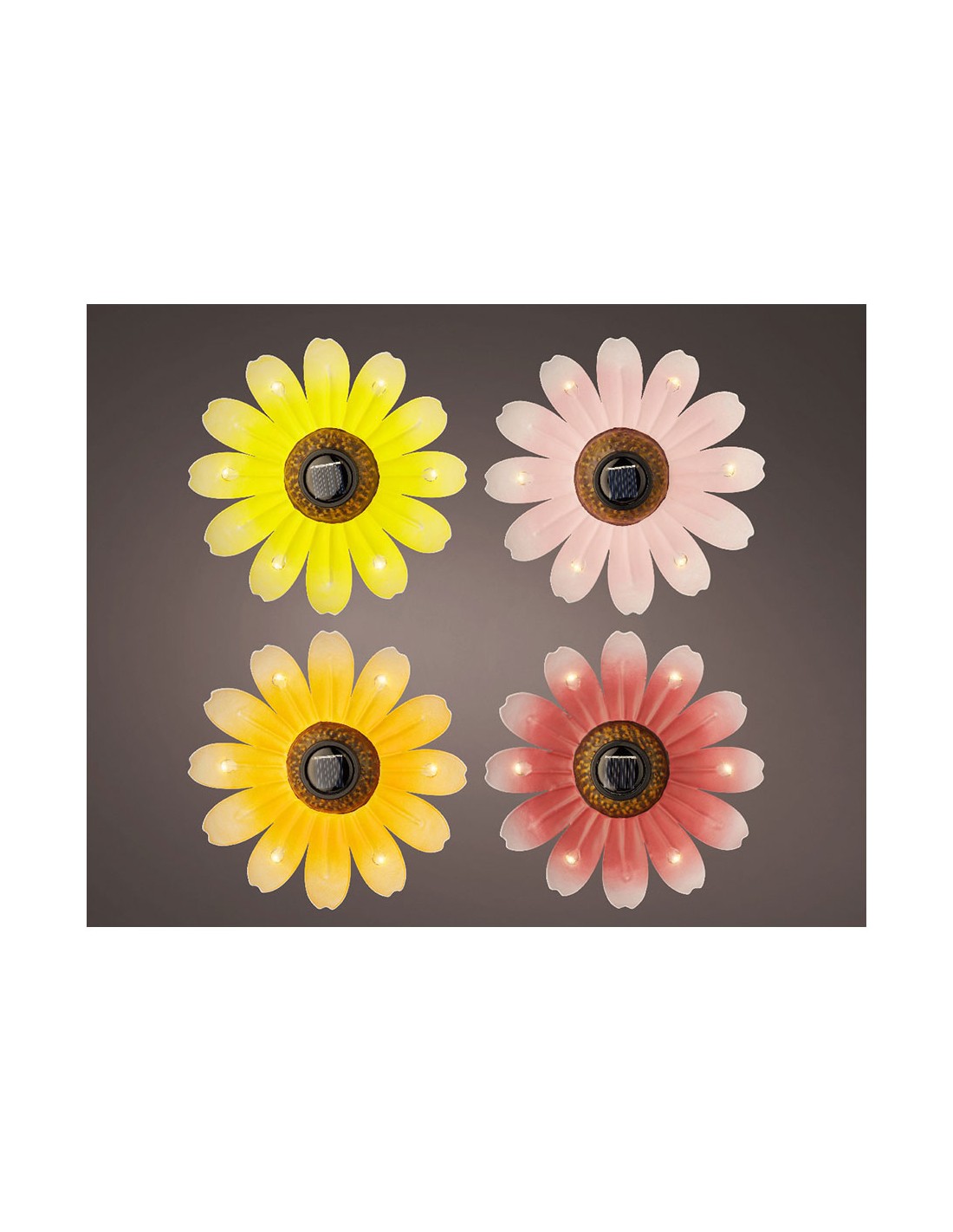 Luz solar metalica con forma de flor ø14x4cm bateria incluida, 6 leds, 1,2v 6 horas de funcionamiento. colores surtidos