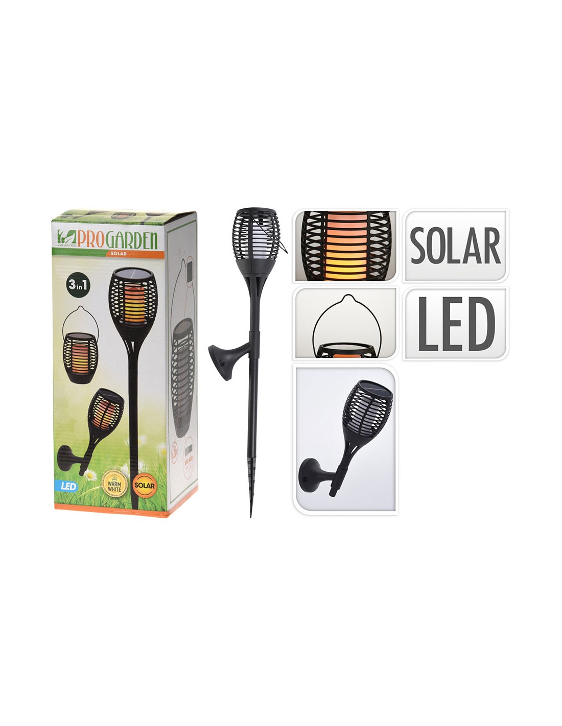 Antorcha solar led multiposición efecto fuego. con gancho para colgar, soporte de pared y tubo de pie, led de llama. 1 batería recargable 1.2v ni-mh aa 300mah incluida, tiempo de funcionamiento: 6-8 horas después de la carga completa, panel solar policristalino.