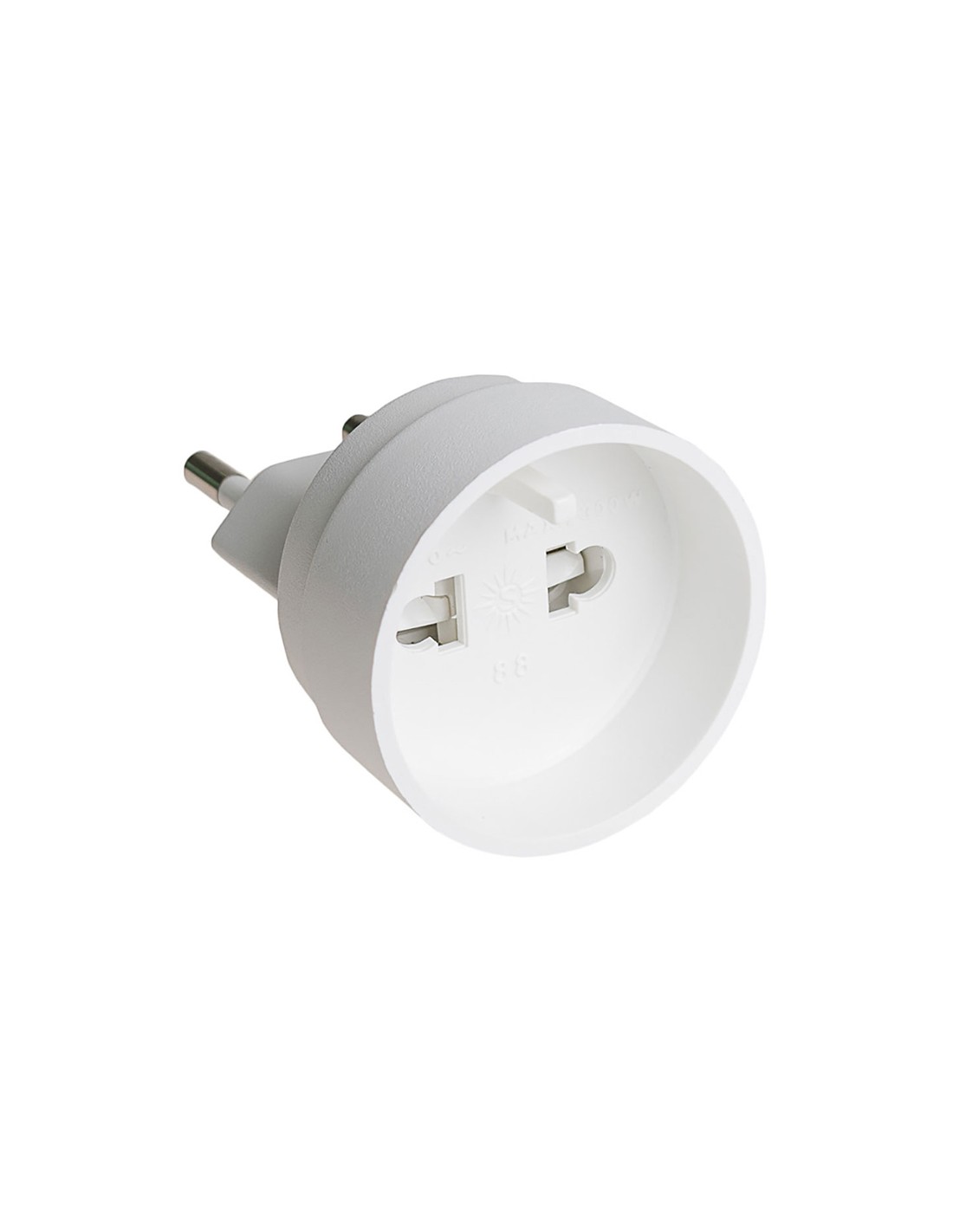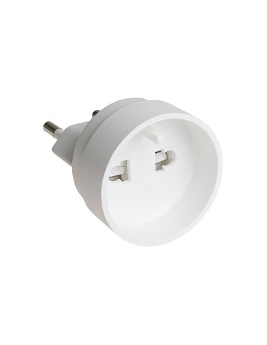Adaptador de viaje 2p, 10a 250v. color blanco. max. 2300w, uso temporal solera equi. 40998