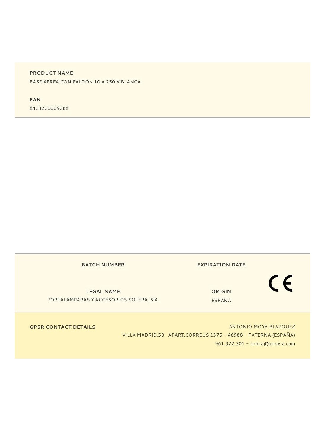 Base aerea con faldón 10 a 250 v blanca embornamiento por tornillo