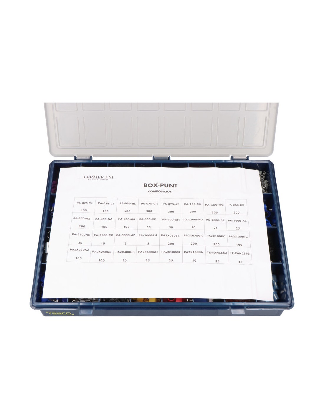 Caja de plástico con surtido de punteras aisladas 3.800 uds. punteras aisladas simples de 0,50 mm a 70 mm y doble de 0,50 a 16 mm