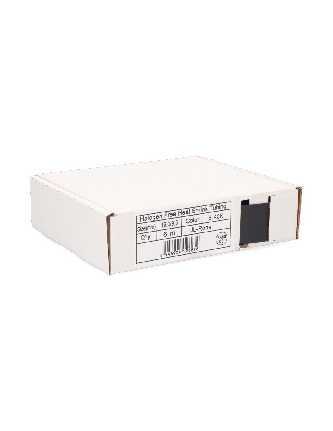 Caja termoretractil dosificadora ø19 - 9,5 mm 6m. caja dosificadora neutra termo-retractil negro .primera medida antes de contraer y la segunda máxima contracción tras calentado.