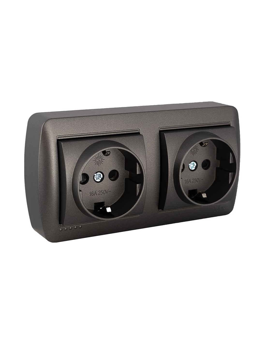 Base fija doble 2p+t, 16a 250v~. de superficie. serie mural base fija doble 2p+t, 16a 250v~.de superficie. color grafito.. dimensiones 148x72x42 mm. entradas para minicanal de 10x16, 10x20 y 16x16 mm. .