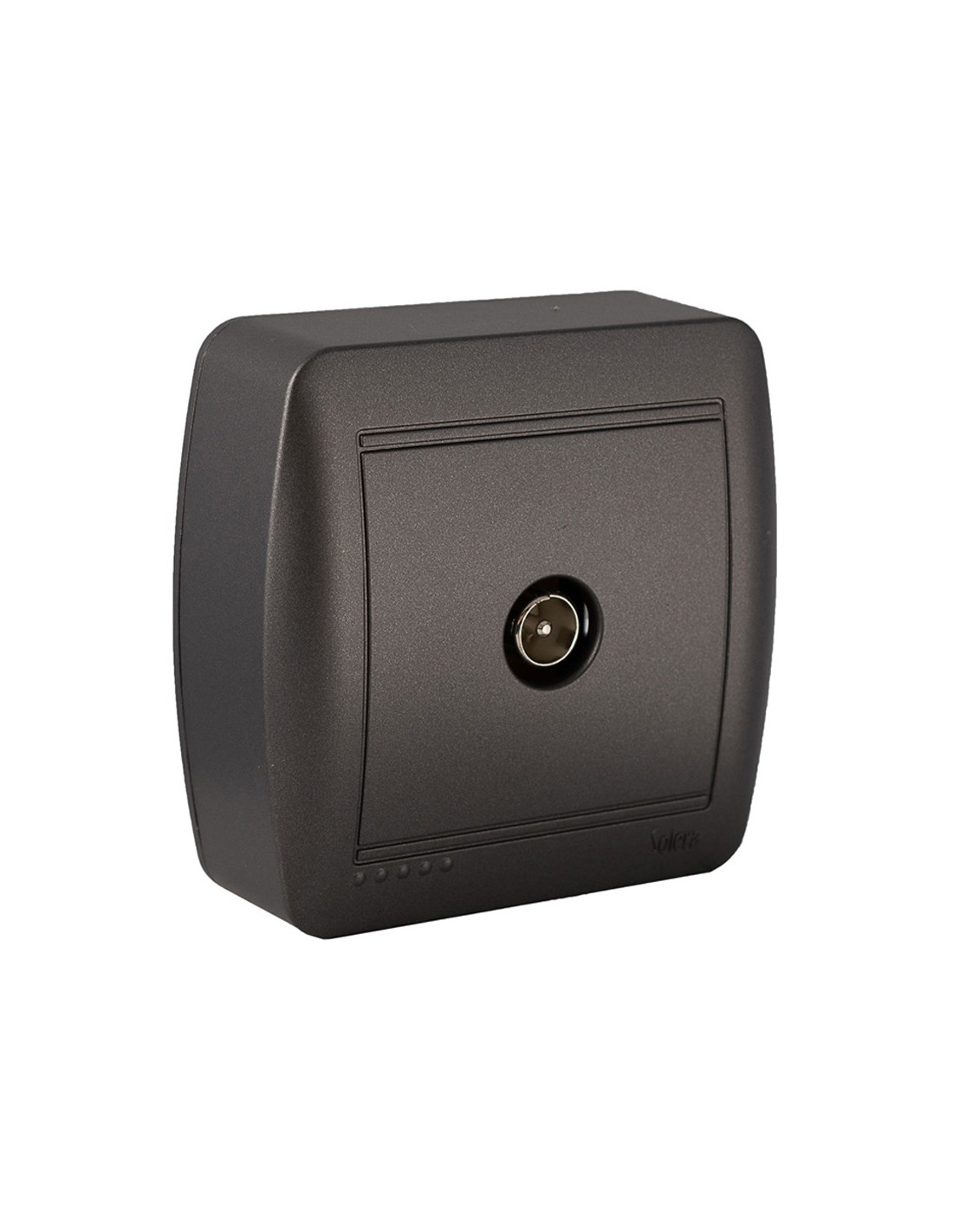 Toma de señal única para tv. de superficie. serie mural toma de señal única para tv. de superficie. color grafito. dimensiones 74x72x28 mm. entradas para minicanal de 10x16, 10x20 y 16x16 mm.
