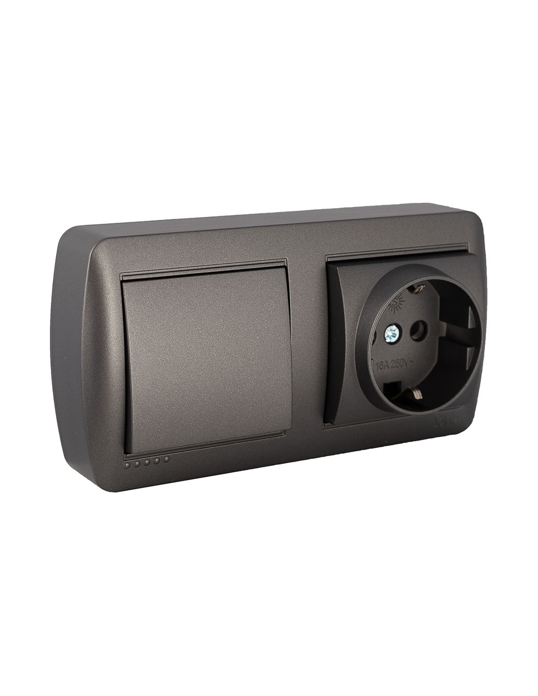 Base fija 2p+t 16a 250v~ + conmutador de cruce 10ax 250v~. de superficie. serie mural base fija 2p+t 16a 250v~ + conmutador de cruce 10ax 250v~. embornamiento por tornillo. de superficie. color grafito. dimensiones 148x72x42 mm. entradas para minicanal de 10x16, 10x20 y 16x16 mm.