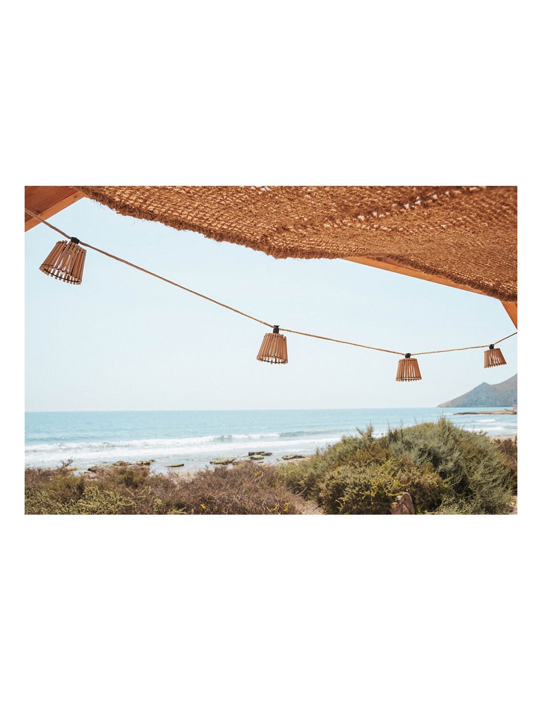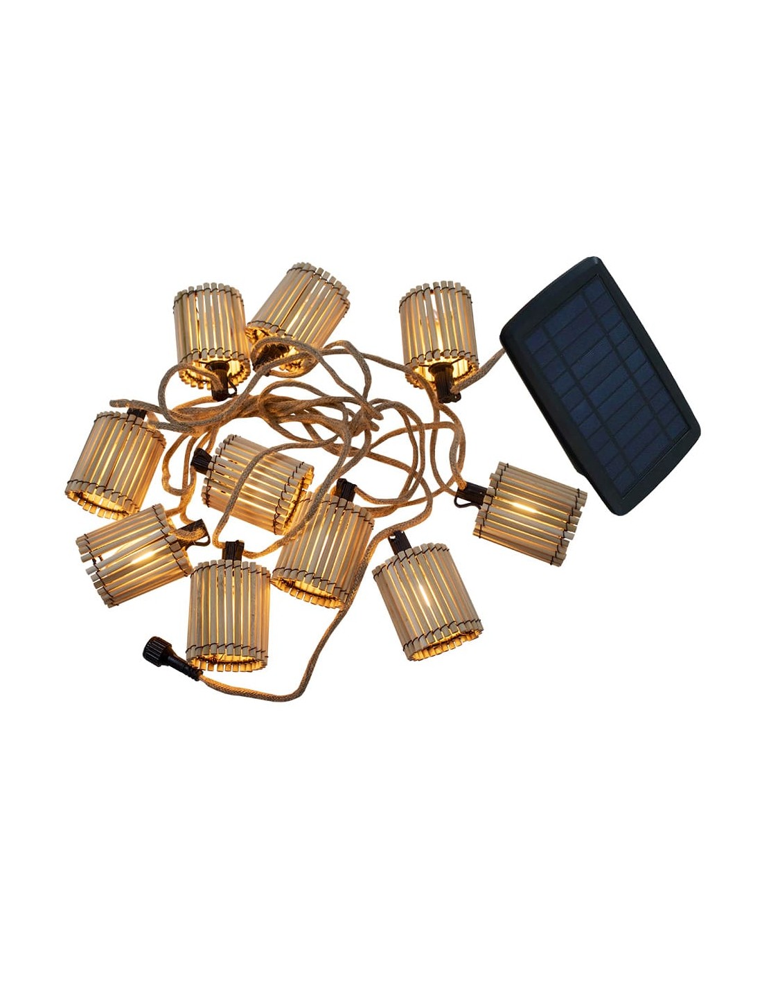 Okinawa es una guirnalda con 10 bombillas de led integrado recambiables con un diseño vintage. es ip44 y mide 8 m de largo. pueden cargarse con cable e incluye un panel solar con sensor crespuscular para su encendido y apagado automático.