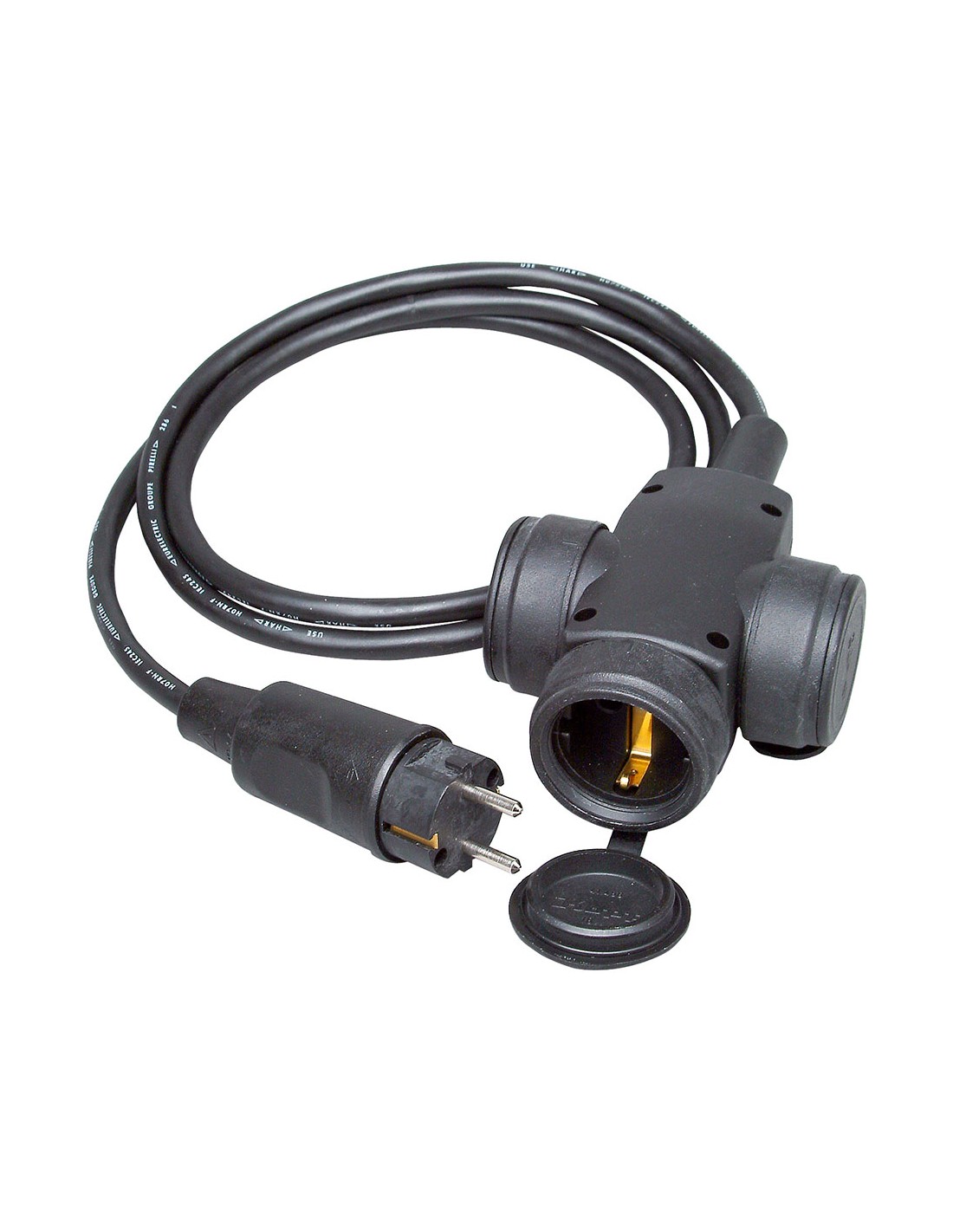 Alargadera h07rn-f 3x1,5mm, 1,5m de longitud con clavija y base aerea triple goma con tapa, 230v 16a, ip44, cee7/4 (tipo f), negra. kopp