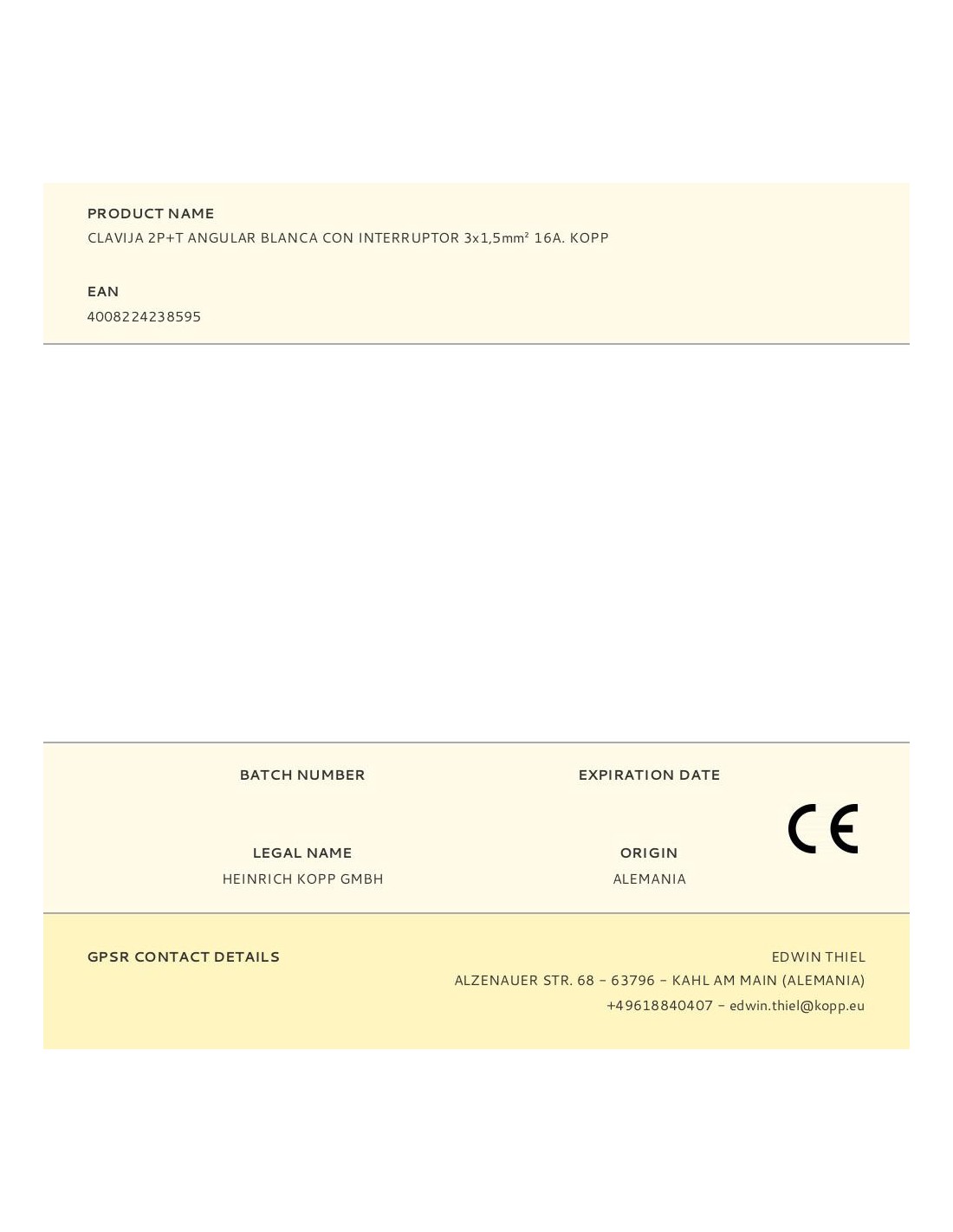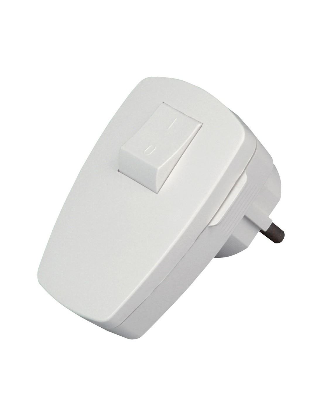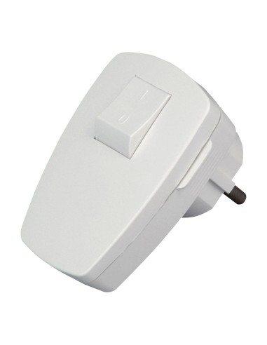 Clavija 2p+t en ángulo con toma tierra, de plástico, con interruptor, entrada de cables por la parte inferior, con 2 tipos de contactos de tierra (e+f) según cee 7/vii, seccion hasta 3x1,5mm, ip20, blanco ártico. kopp