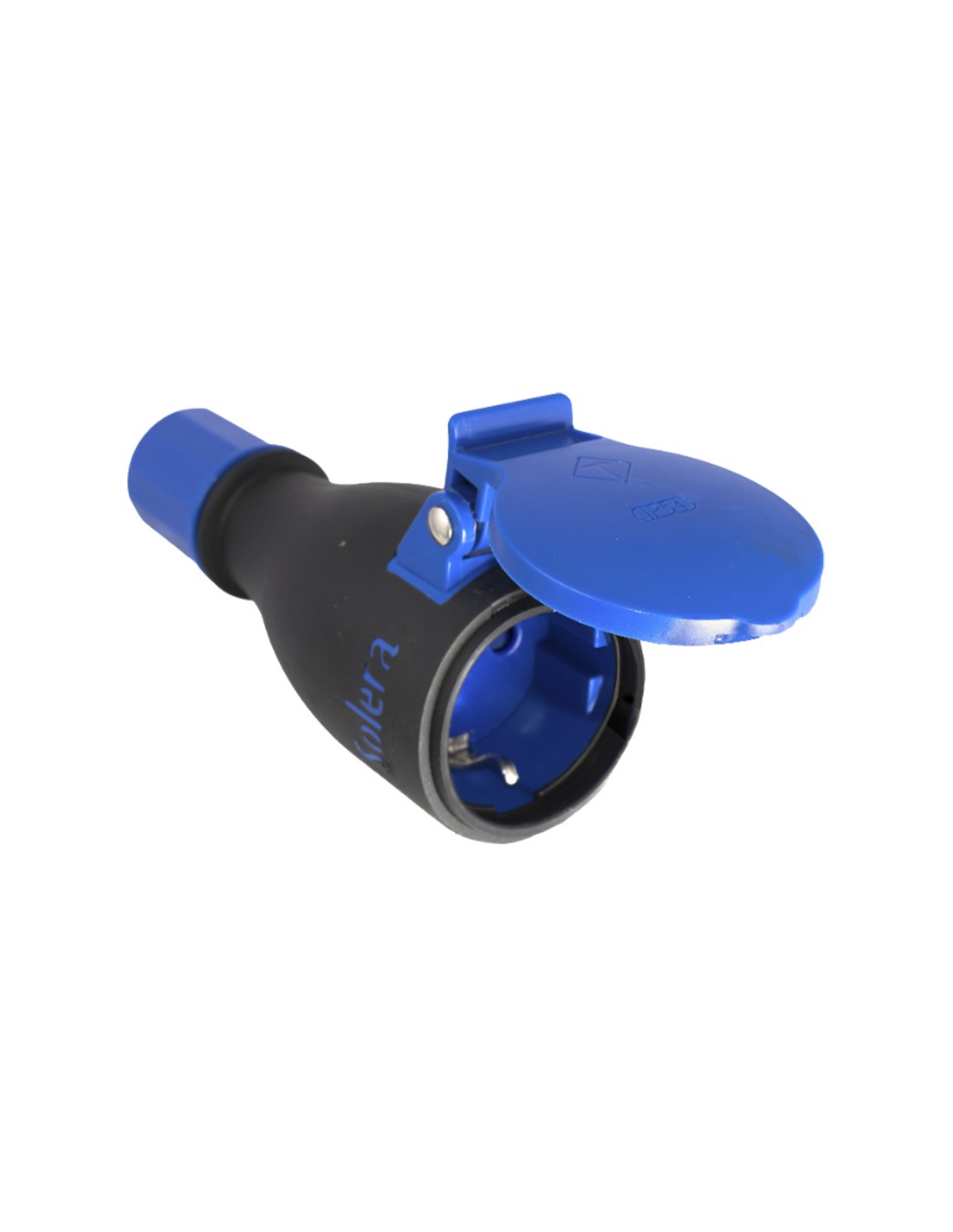 Material caucho termoplástico negro. ip54. sujetacables abatible para facilitar el embornamiento.schuko t/t lateral. posibilidad de utilizar cable 3x2,5 mm. con prensaestopa.máx.3680w.