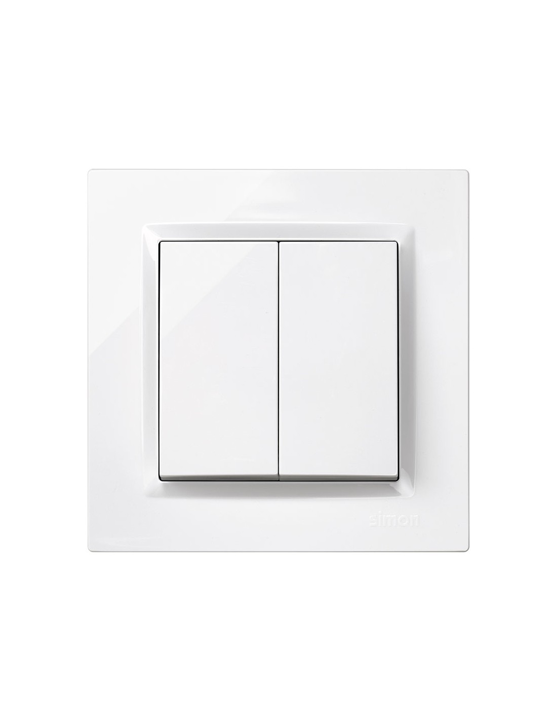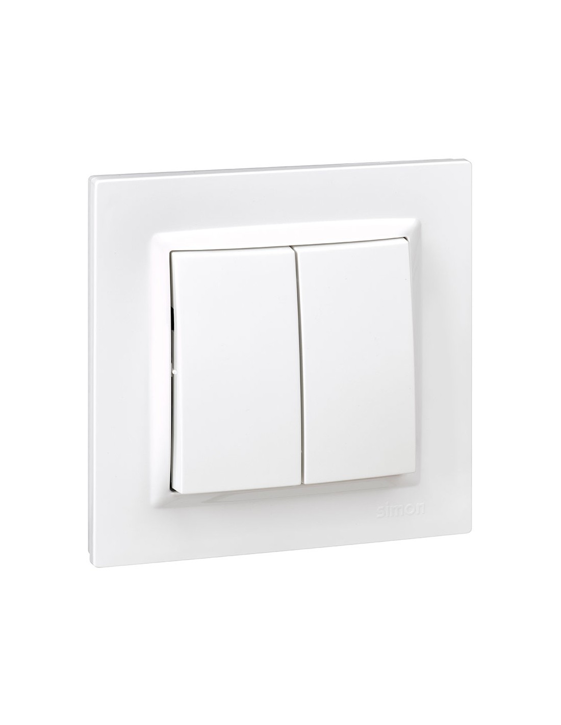 Doble conmutador blanco serie 10. material plástico, ip20, 230v, 10ax. medida 8,4x4x8,4 cm.enclavamiento 2.5cm. con marco.