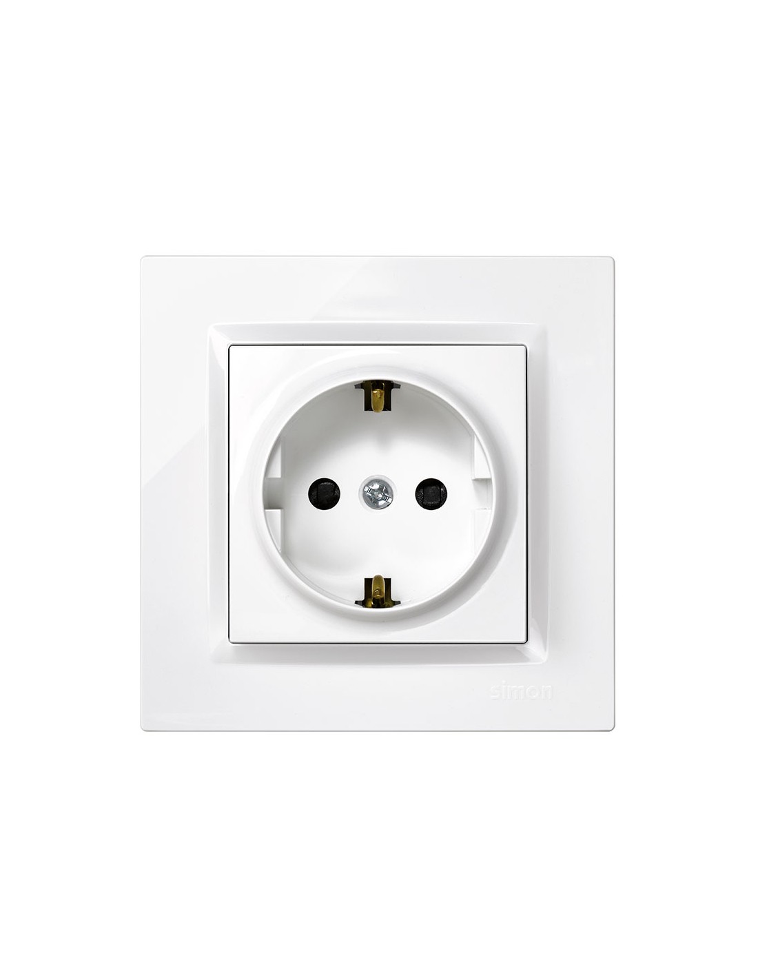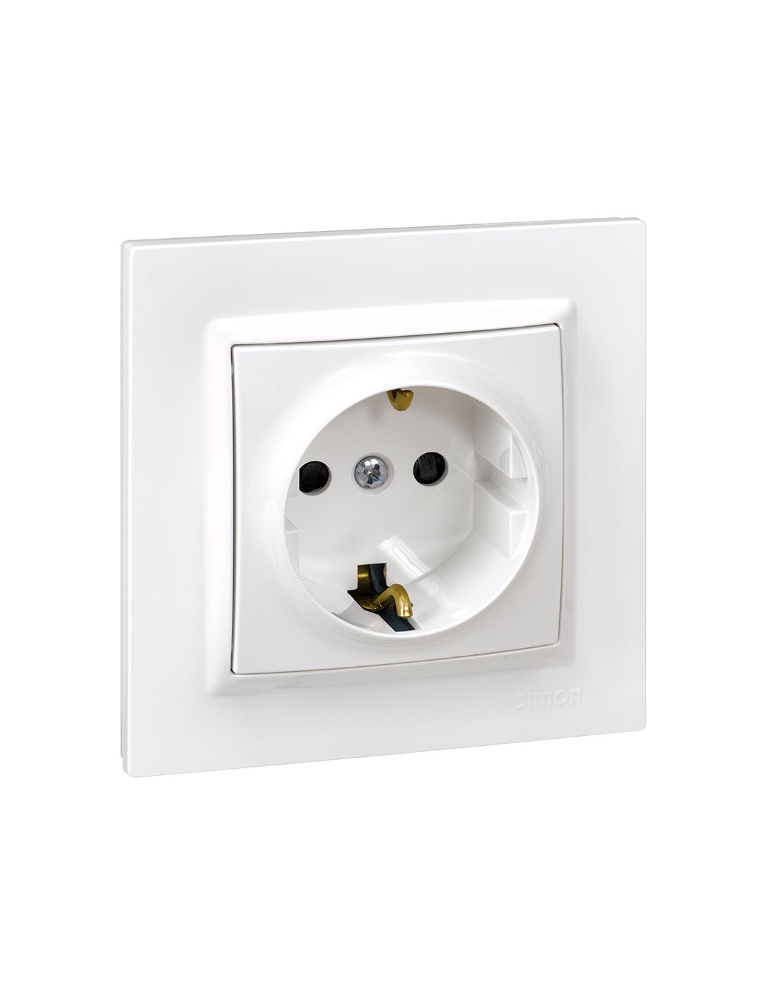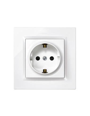 Enchufe 2p+t schuko blanco con marco serie 10. material plástico, ip20, 230v, 16a. 2 polos y toma tierra. medida 8,4 x 3,5 x 8,4 cm., medida enclavamiento 2,5cm
