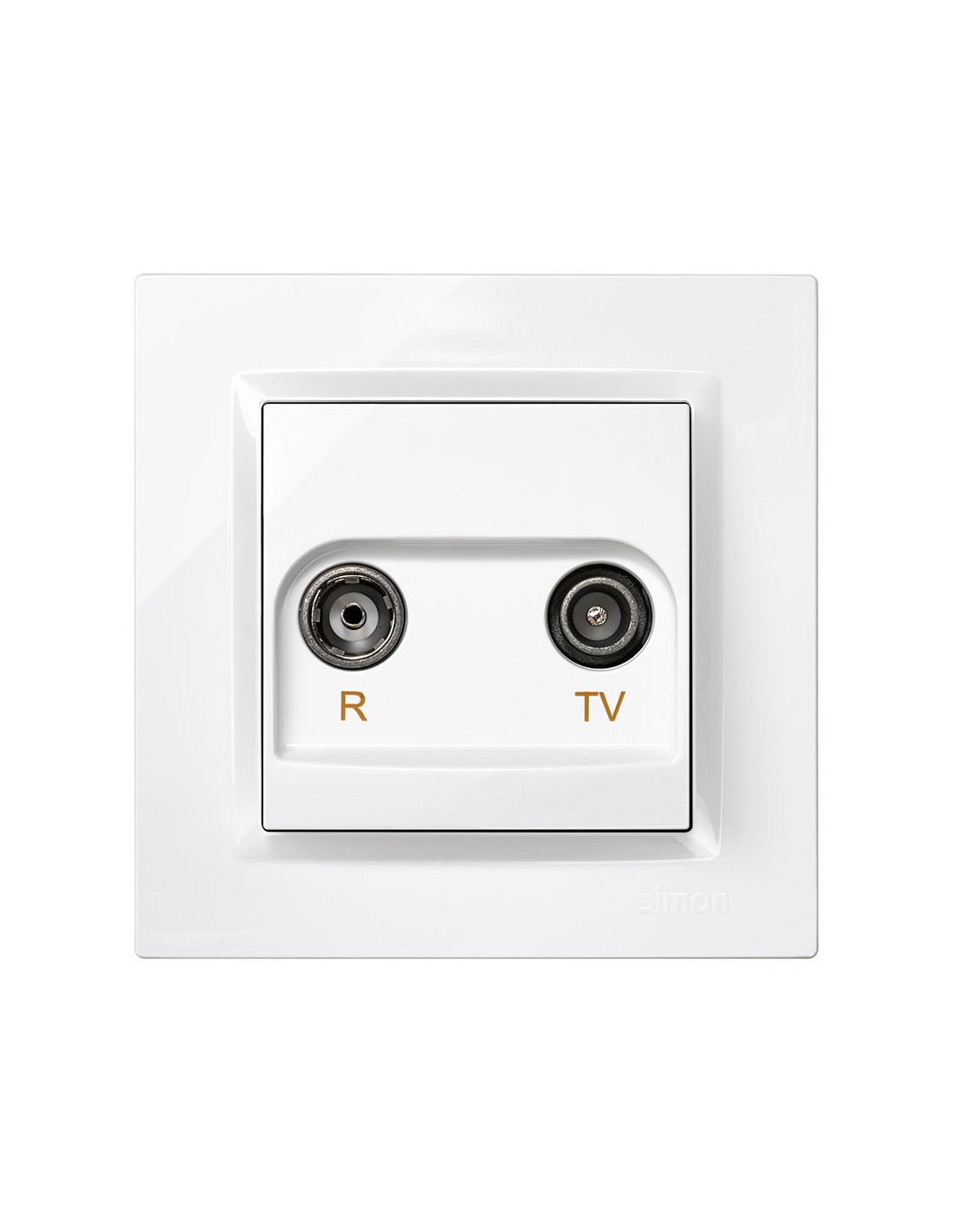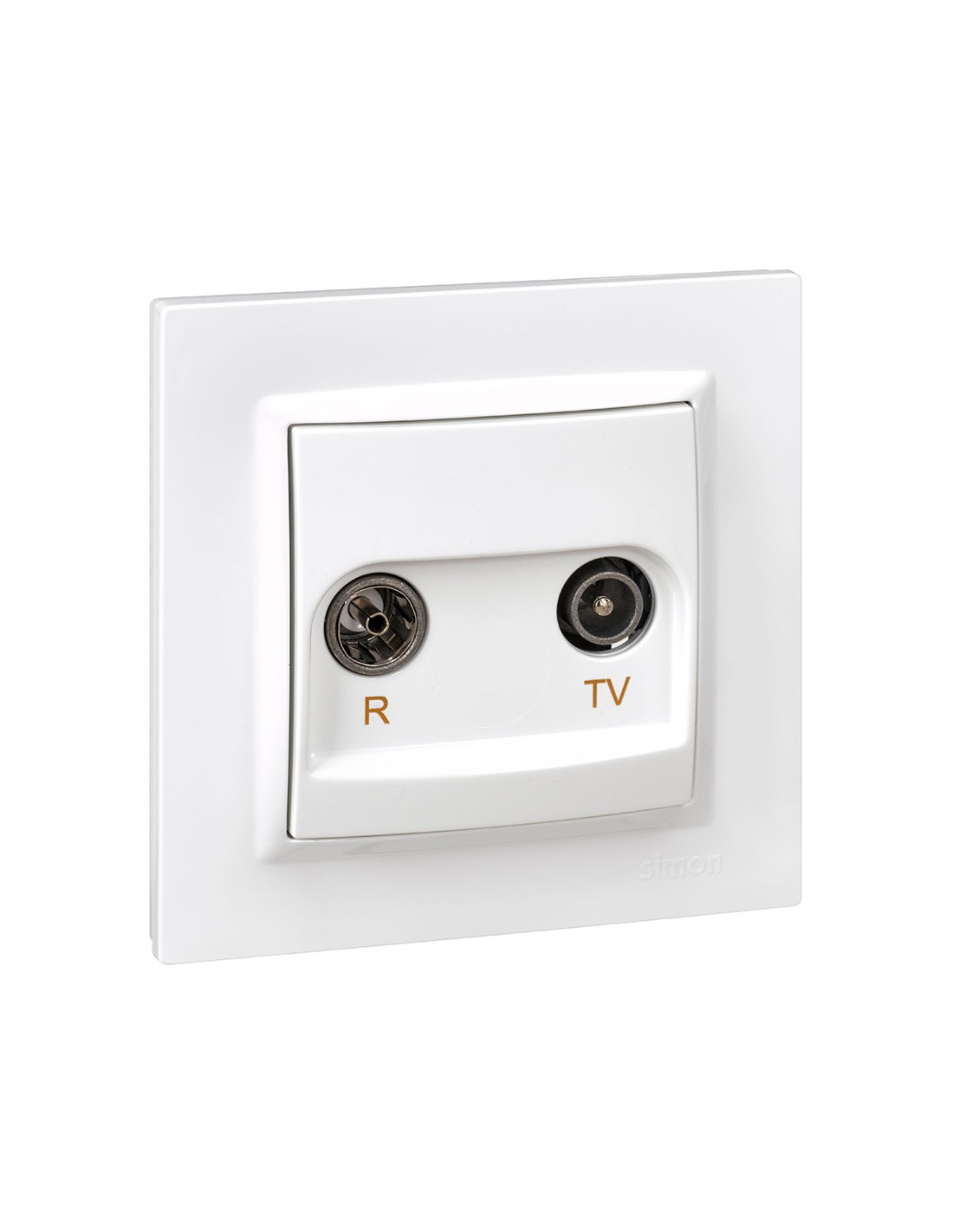 Toma televisión final blanco con marco serie 10, acabado aluminio, material plástico, ip20, medida 8,5 x 3,5 x 8,5cm, medida de enclavamiento 2,5cm