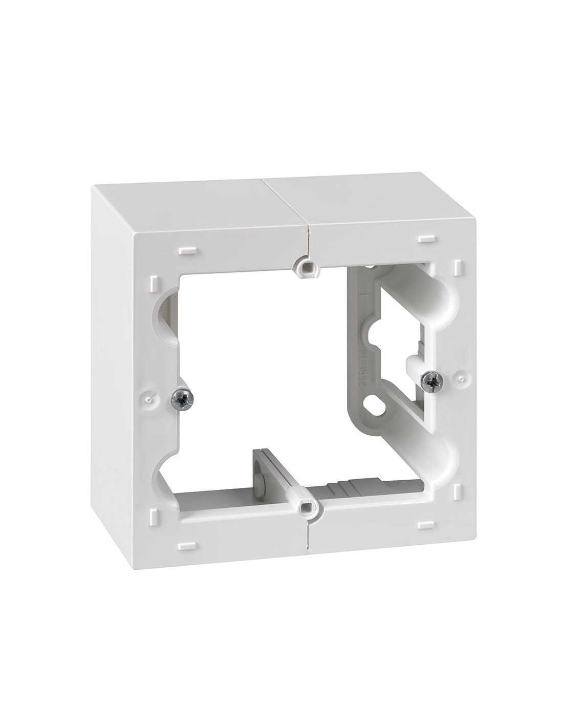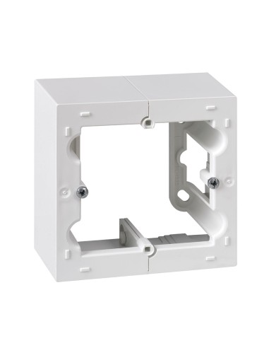 Caja de superficie blanco serie 10. material plástico, ip20. se utiliza para pulsador, conmutador, enchufe tipo f 2p+t. medida 8,4x4x8,4 cm.