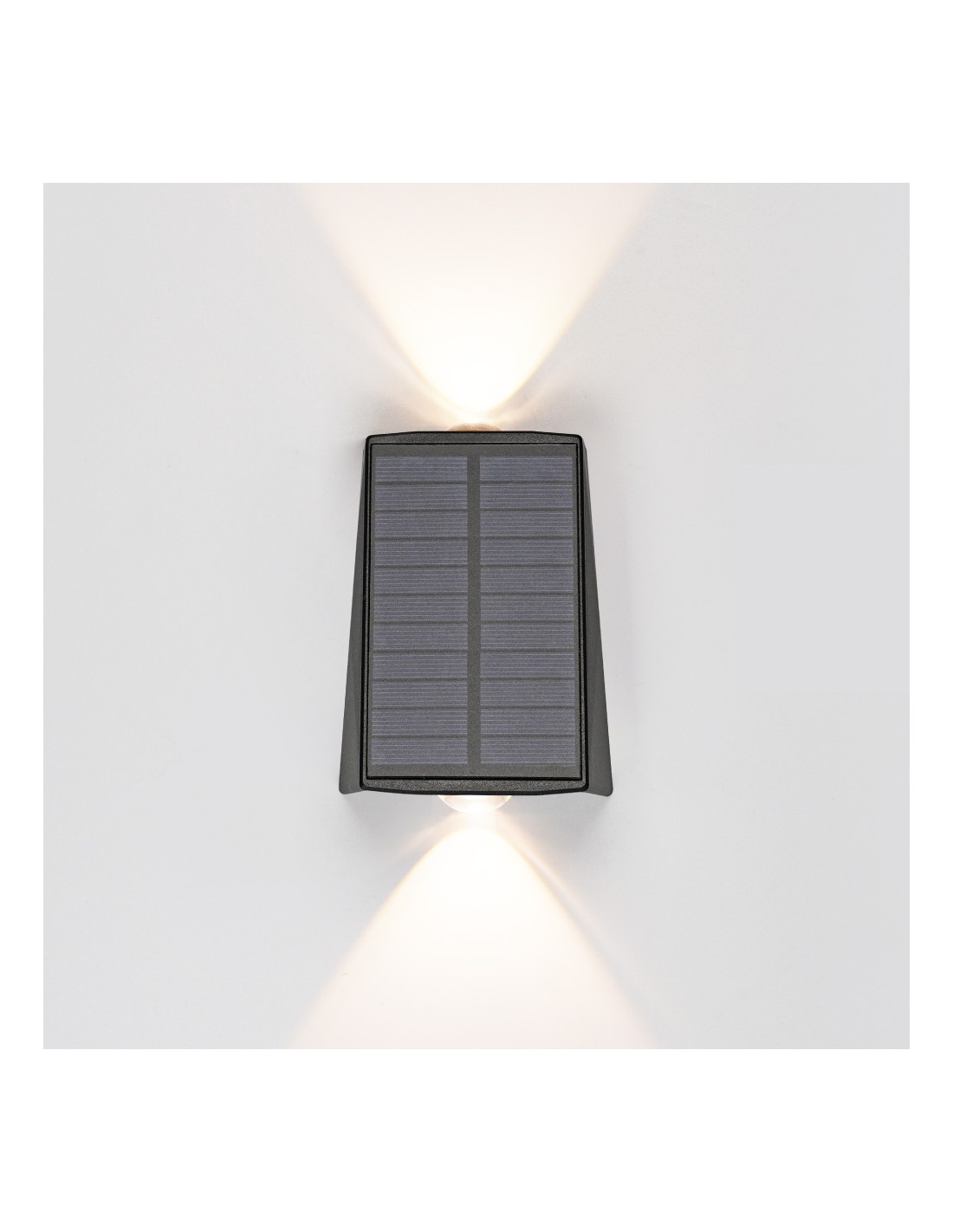 Aplique solar led con 2 leds y sensor crepuscular, 100lm, 2w,luz cálida 3.000k, ip65, batería 3,7v, 1.800mah, 1,5w potencia del panel solar, +6h tiempo de carga, 8-12h tiempo de funcionamiento, material abs+pc, incluye kit de montaje, medidas 9,4x7,1x13,5cm