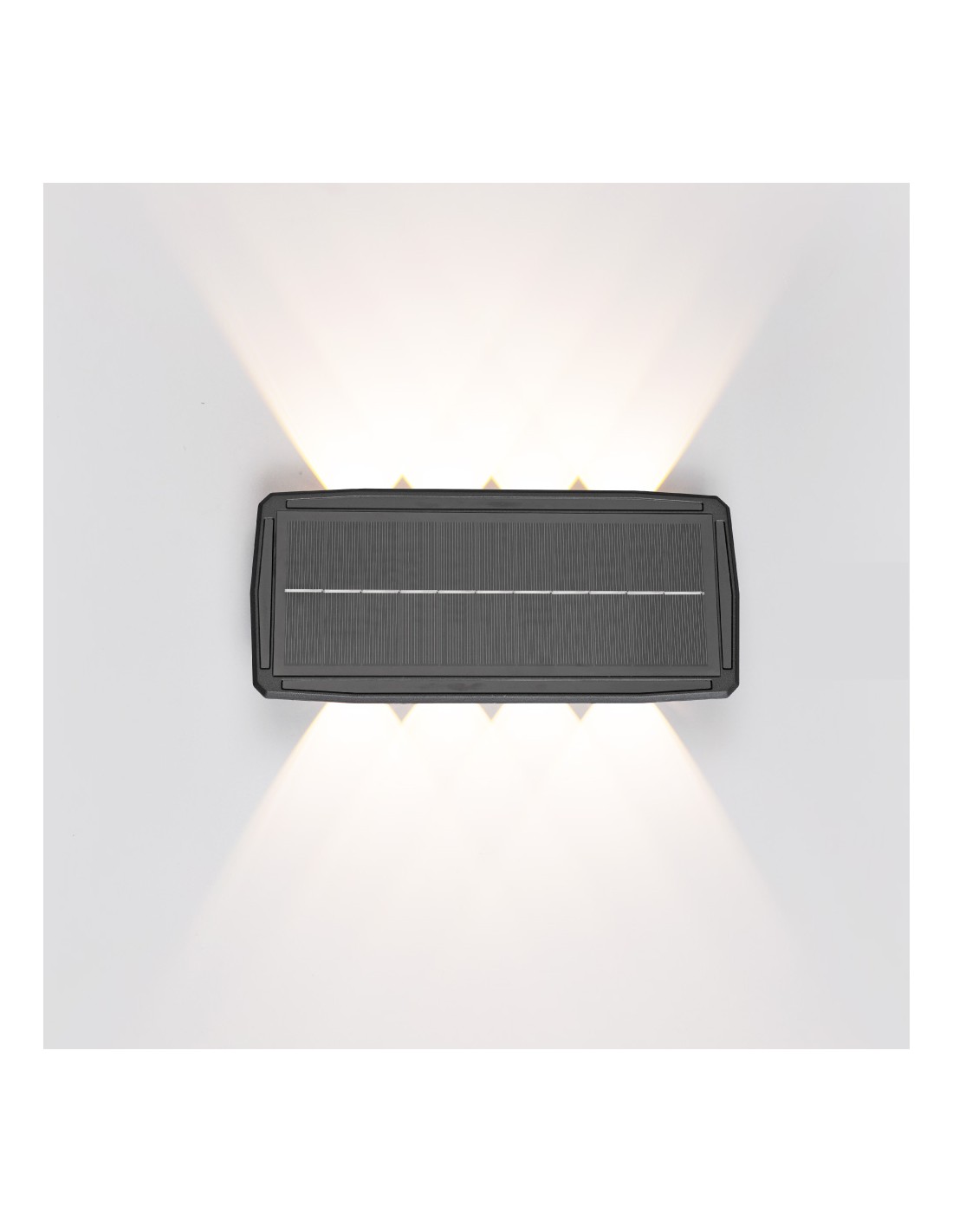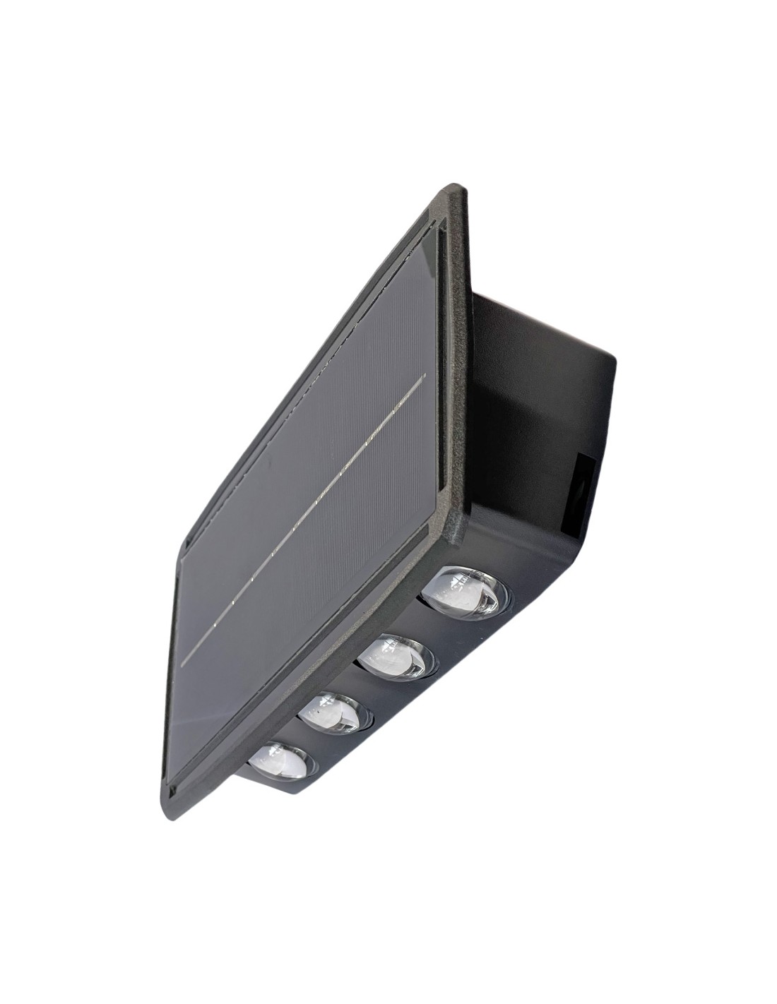 Aplique solar 8 leds 8w, con sensor crepuscular y de movimiento, 400lm, luz cálida 3.000k, ip65, batera 3,7v, 2.000mah, 4w potencia el panel solar, +6htiempo de carga, 8-12h tiempo de funcionamiento, material abs+pc, incluye kit de montaje, medidas: 26,4 x 11,6 x 6,5 cm