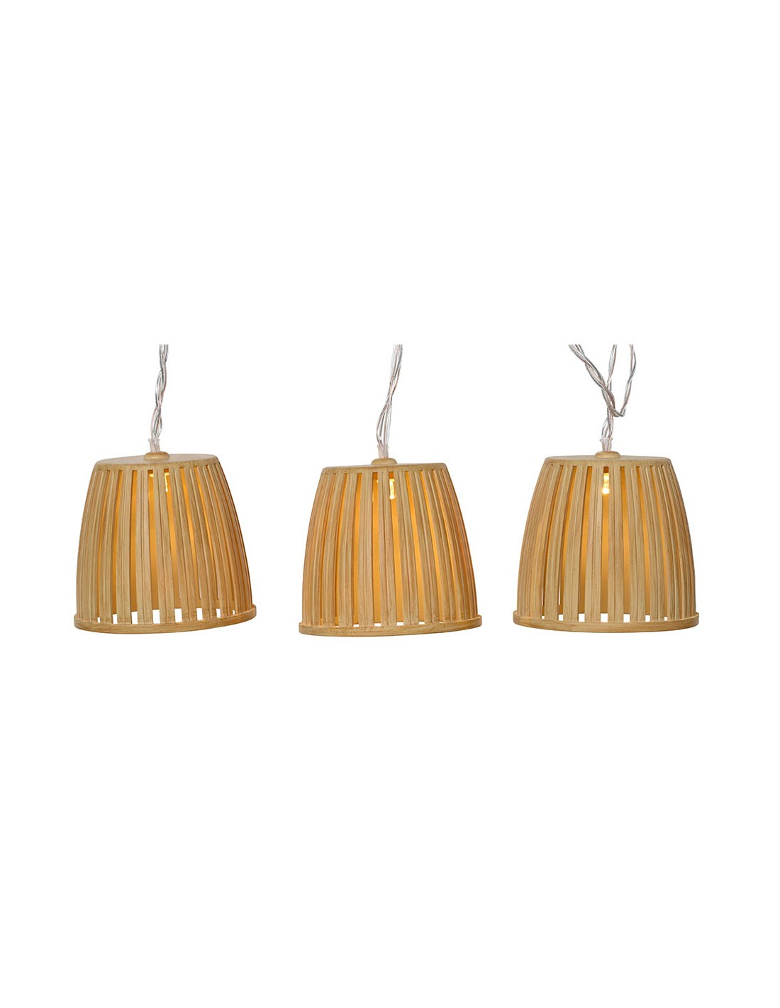 Guirnalda de luz solar, en forma de cestos de color madera, 7 cm de alto. para exterior ip44, 10 leds, luz blanca cálida, 3 im. cable alimentación 3 m, distancia entre leds de 50 cm. longitud total 4,5 m. interruptor encendido / apagado. sin enchufe, encendido automático en la oscuridad. incluye batería 1 x aa 400 mah recargable (bateria remplazable), 6 horas de batería aproximadamente