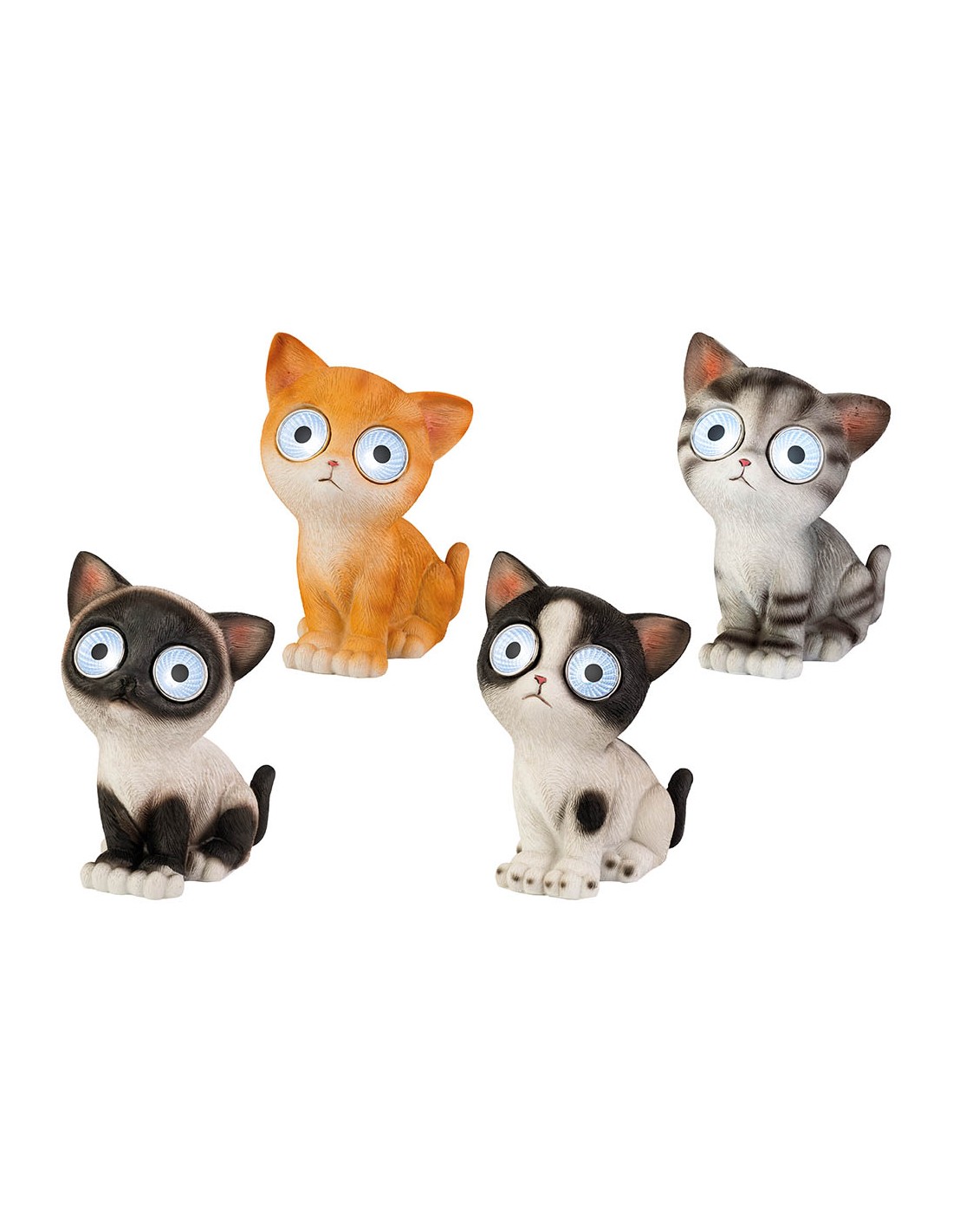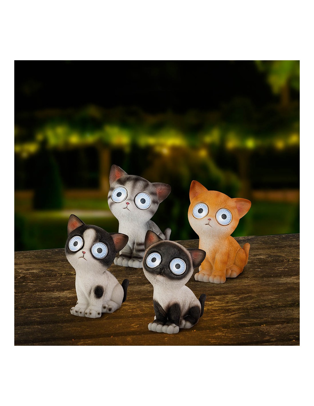 Figura gato, luz solar, modelos variados. con luz fija blanca fría. contiene bateria 1 x ni-mh 40mah y panel solar. con interruptor de encendido/apagado, encendido automático en la oscuridad. autonomía 6 h