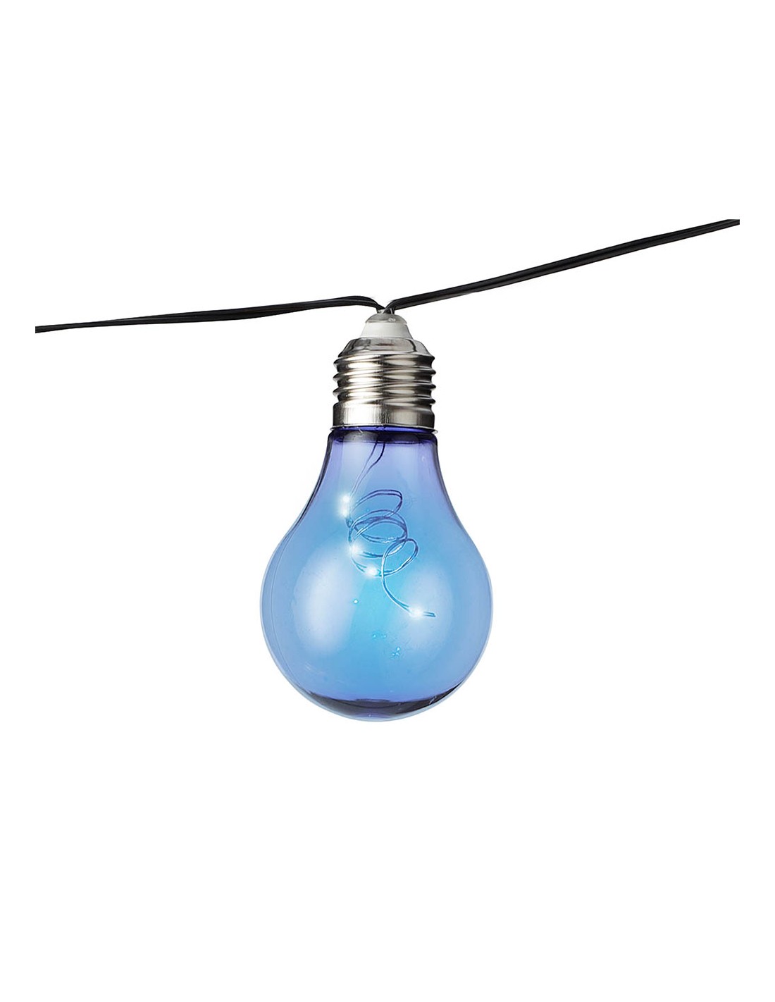 Guirnalda solar con bombillas de plástico de colores, luz blanca cálida, 2 funciones ( efecto fijo y parpadeante), 10 x 5 led, 4.5 m guirnalda + 5 m de cable color negro, contiene bateria recargable 1 x aa 600 mah, panel solar con estaca. con interruptor de encendido/apagado/flash, encendido automático en la oscuridad. duración estimada de bateria 6 h. bateria remplazable