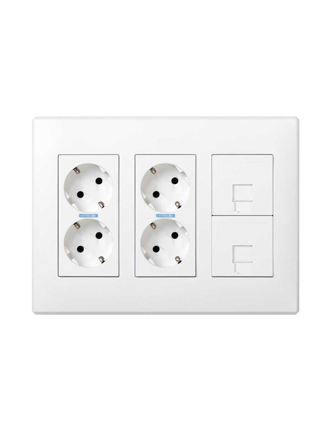 Kit de caja pared de superficie o empotrar para 6 elementos incluye 2 enchufes dobles blancos y 2 placas 1 rj45, blanco, formato base schuko y clipaje keystone i, ii, att/avaya. 223 x 167 x 46 mm. simon 500 cima