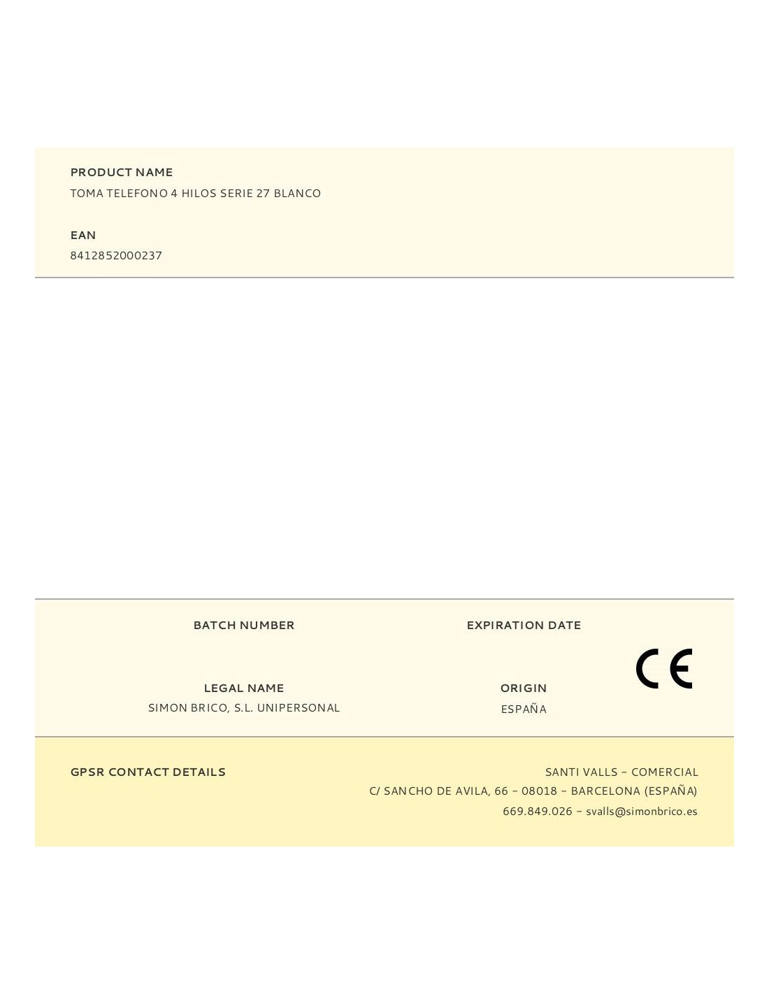 Mecanismo + tapa toma telefono rj11 serie 27 blanco, 45 x 45 mm