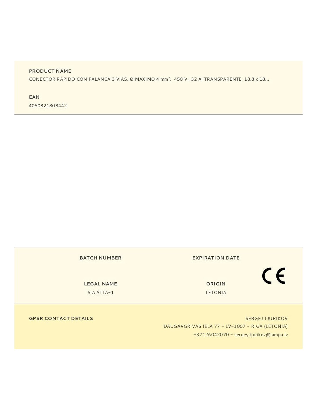 Conector rapido con palanca, para 3 conductores rigidos, semirigidos o flexibles de cobre, diametro entre 0,14 a 4 mm, 450 v, 32 a temperatura maxima 85°c policarbonato transparente 18,8 x 18,6 x 8,4 mm