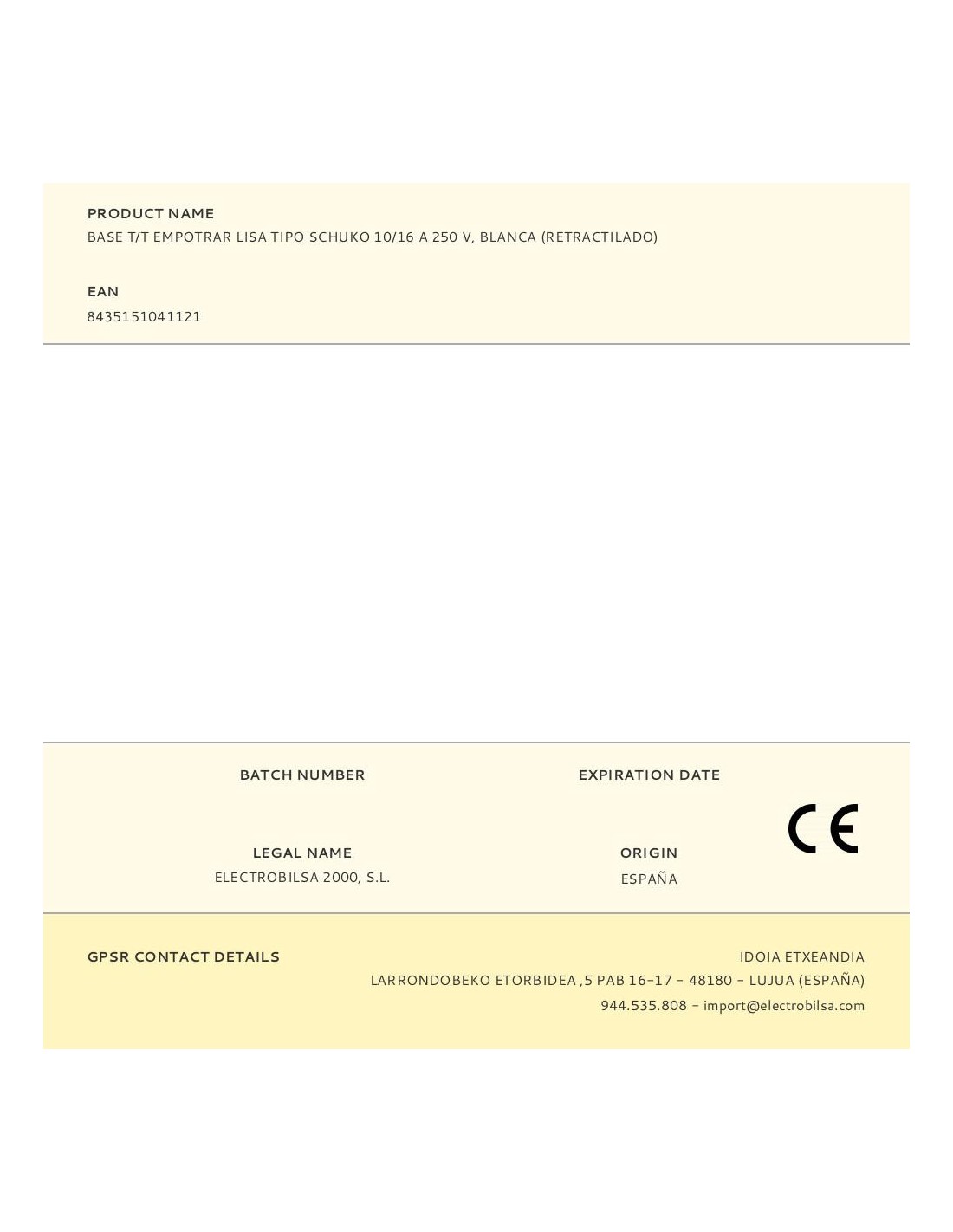 Base t/t empotrar lisa tipo schuko 10/16 a 250 v, blanca (retractilado)