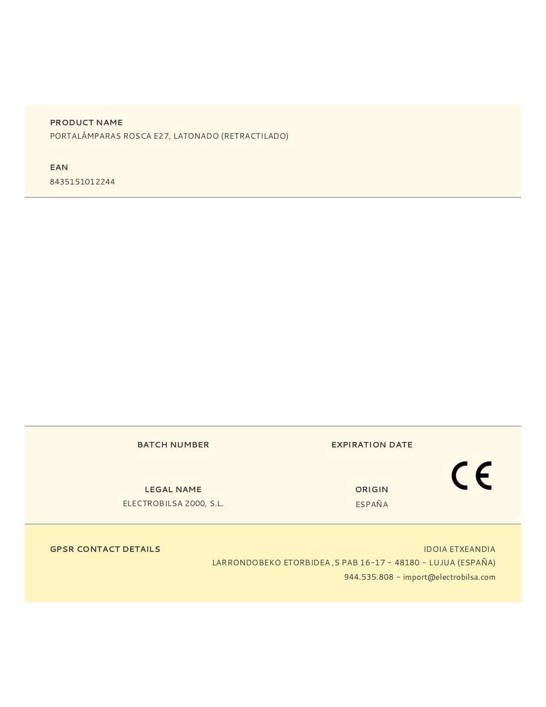 Portalámparas e27 rosca exterior europea con doble arandela, latonado (retractilado)