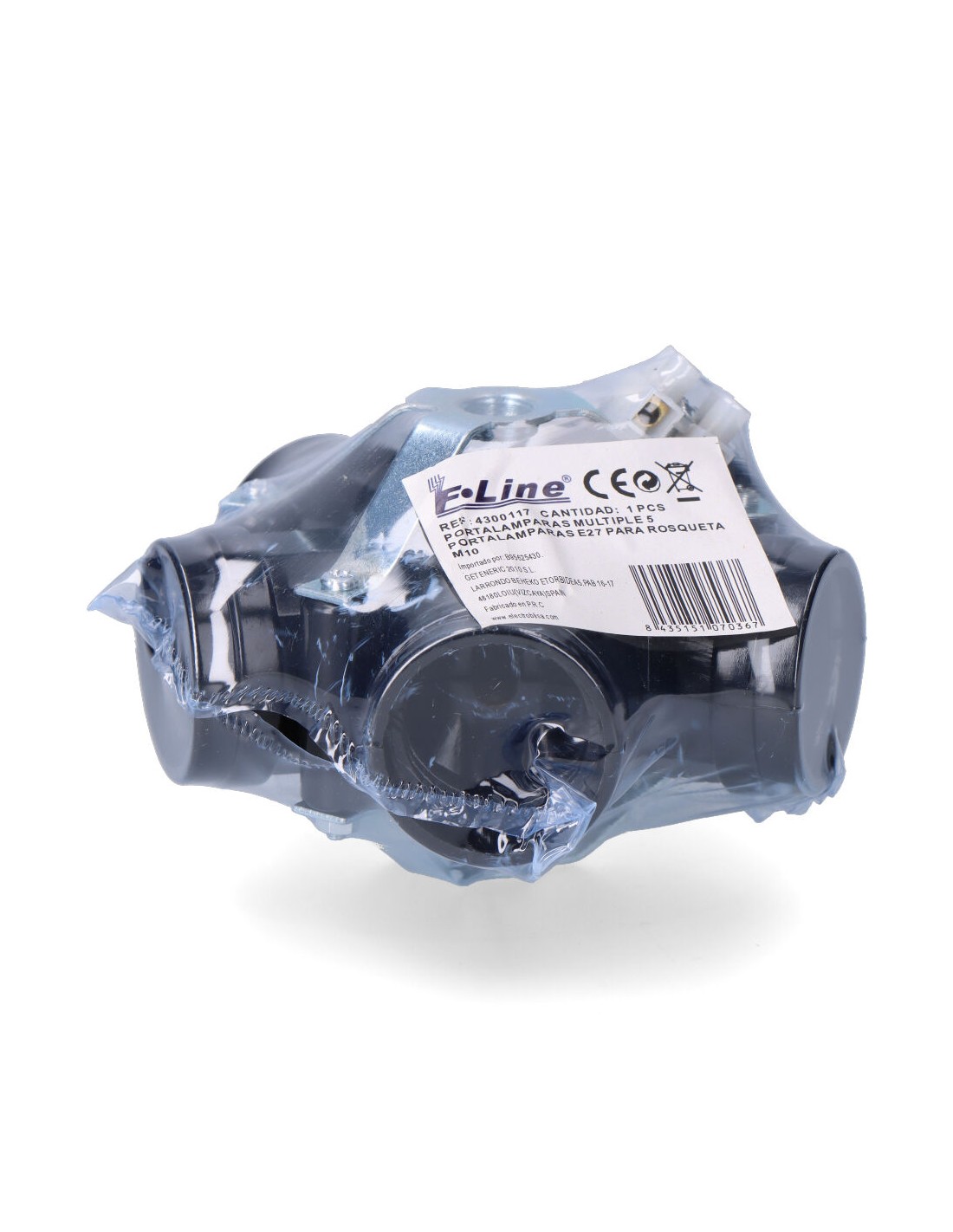 Portalámparas múltiple, cinco portalámparas de casquillo e27 para rosca m10, negro (retractilado)