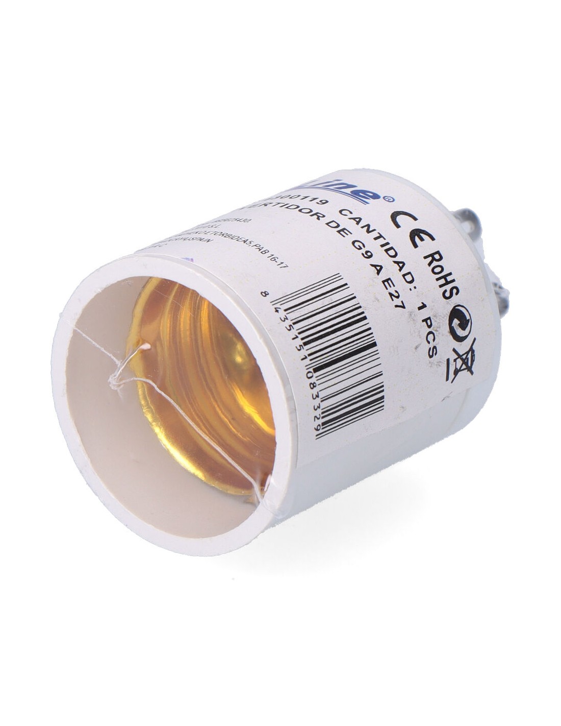 El convertidor de rosca g9-e27 permite colocar bombillas de rosca e27 en portalámparas tipo g9, blanco, ø33 x 57mm (retractilado)