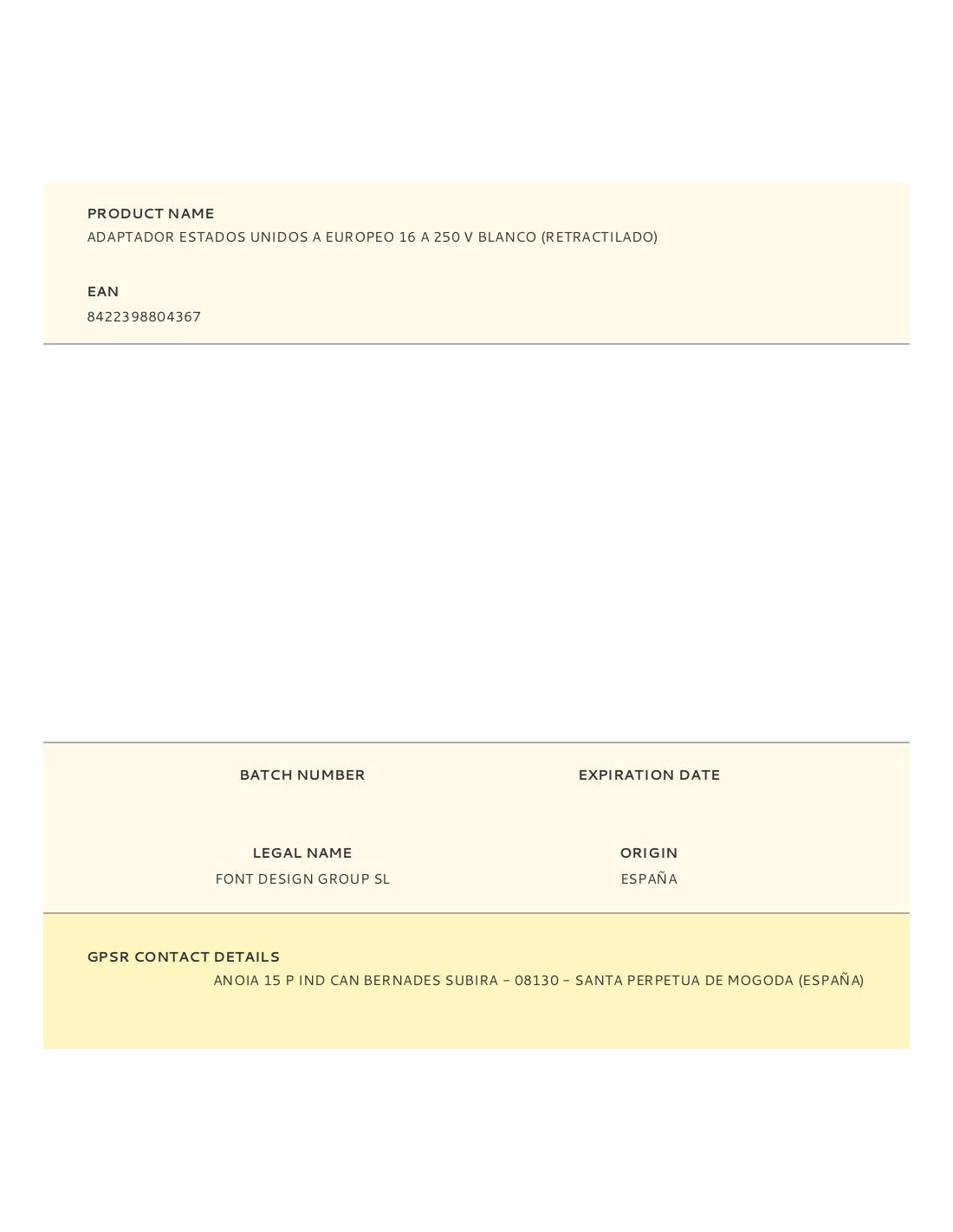Adaptador estados unidos a europeo 16 a 250 v blanco (retractilado)
