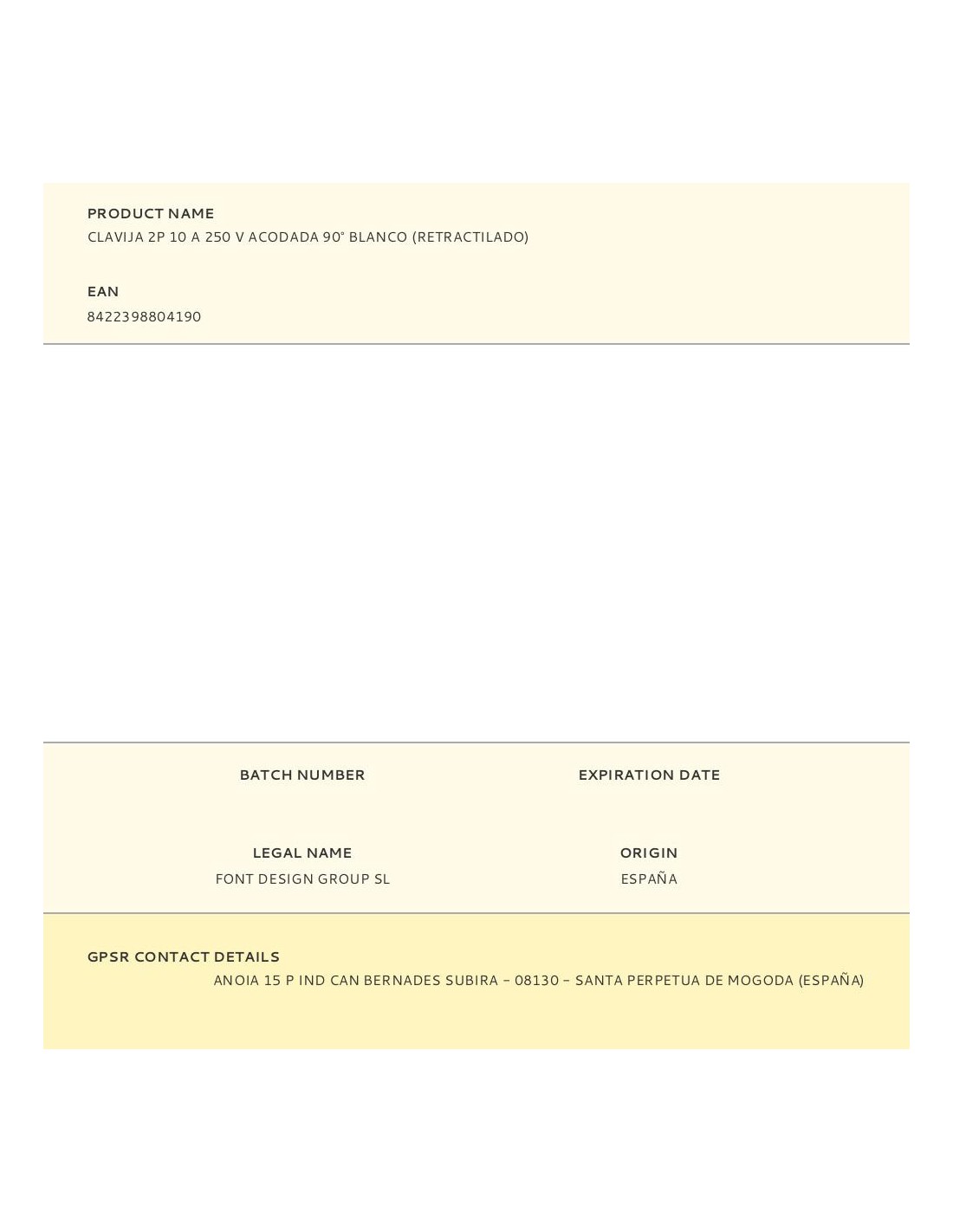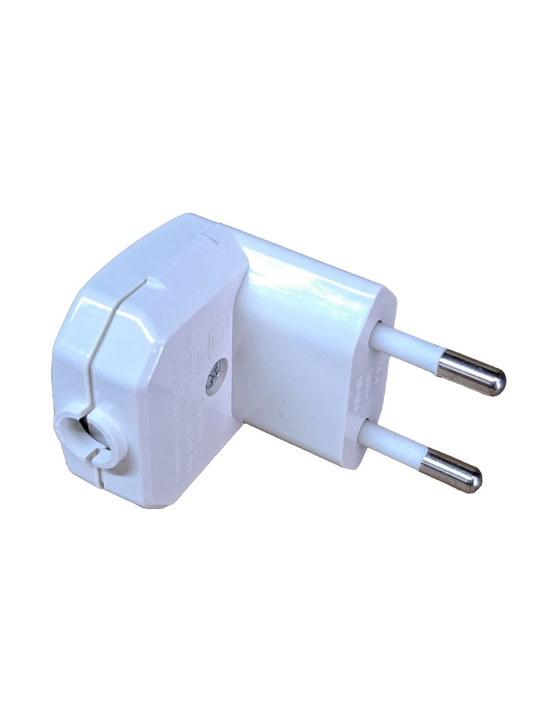 Clavija 2p 10 a 250 v acodada 90° blanco (retractilado)