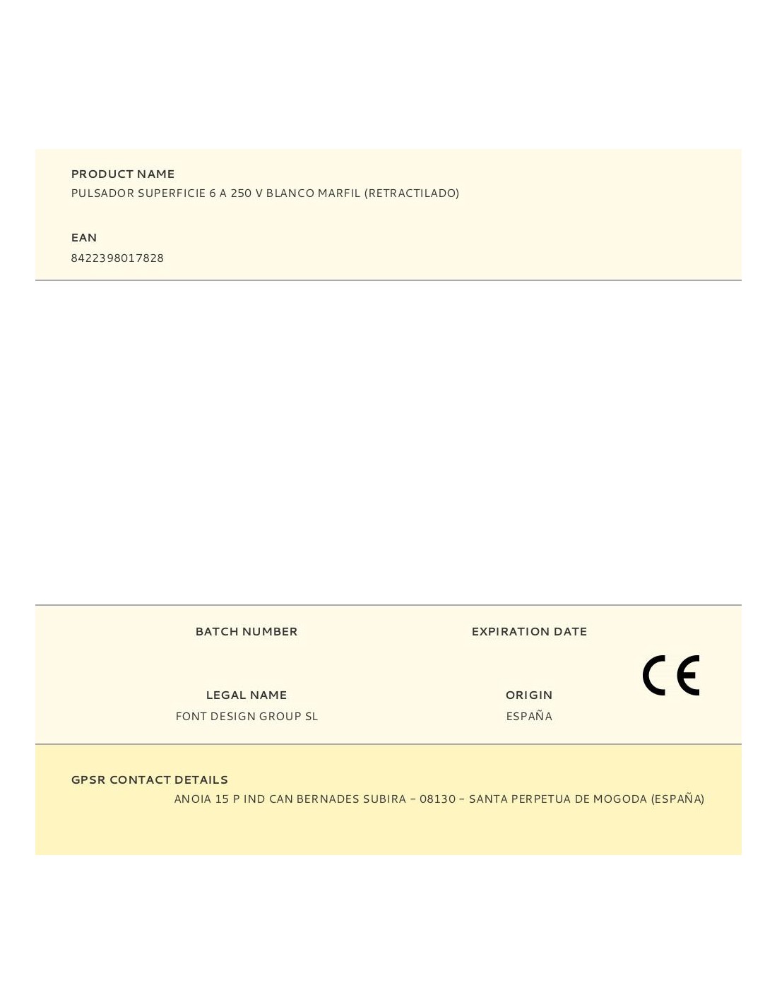 Pulsador superficie 6 a 250 v blanco marfil (retractilado)