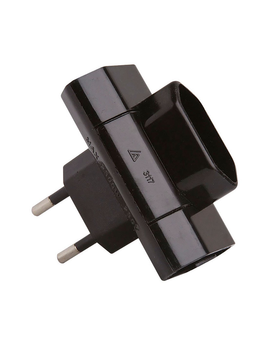 Adaptador triple lateral 2p 10a 250 v~, negro