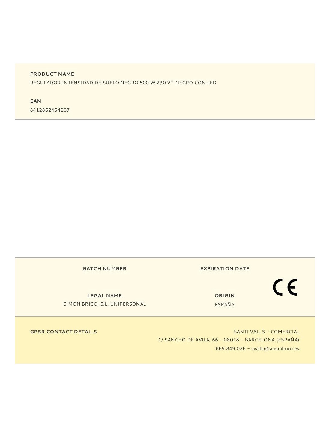 Regulador intensidad de suelo negro 500 w 230 v~ negro con led