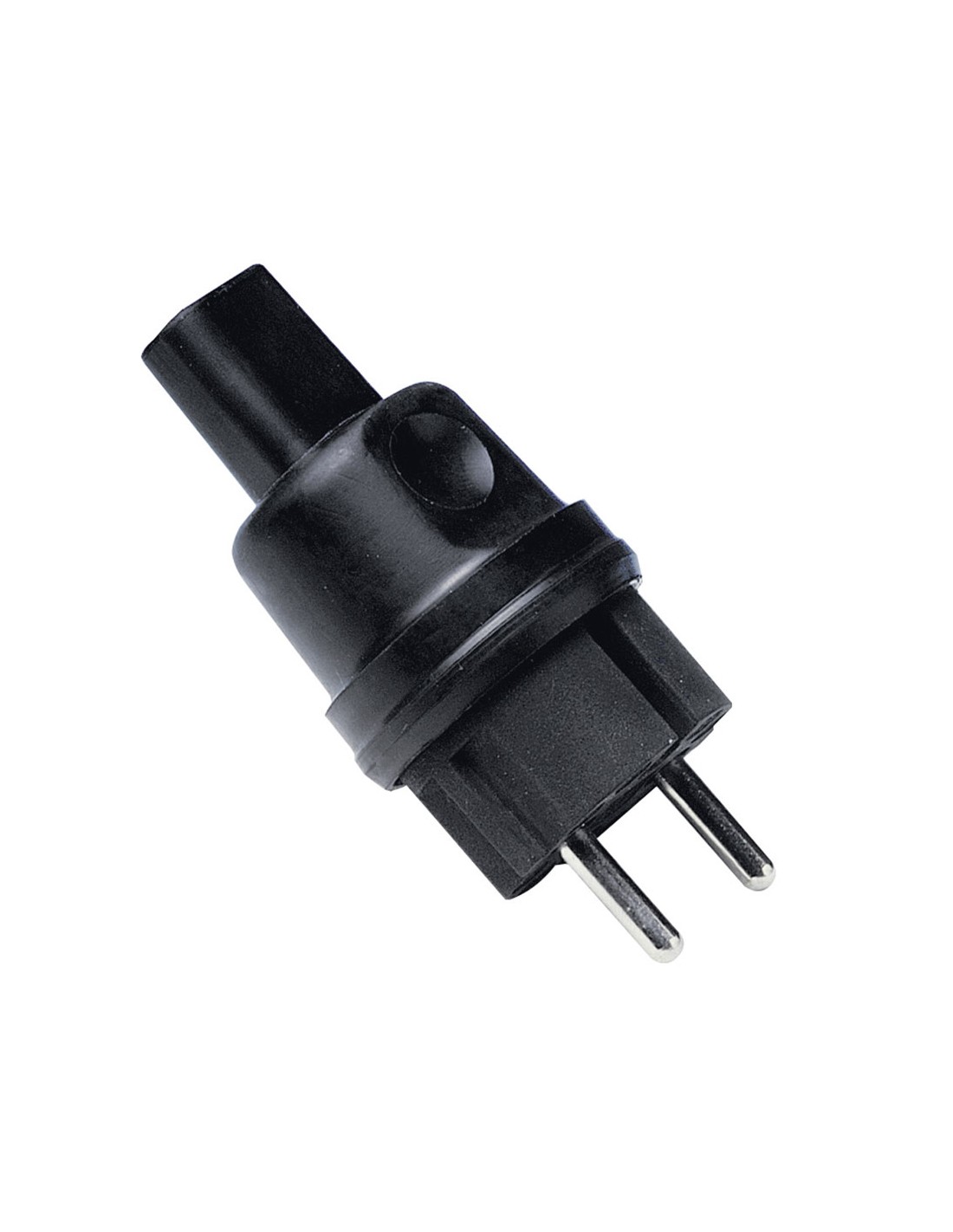 Clavija bipolar de goma negra con entrada de cable recta para cable rectangular de 5 x 11 mm. ip44, 16a 250v. dimensiones 99 x ø42 mm
