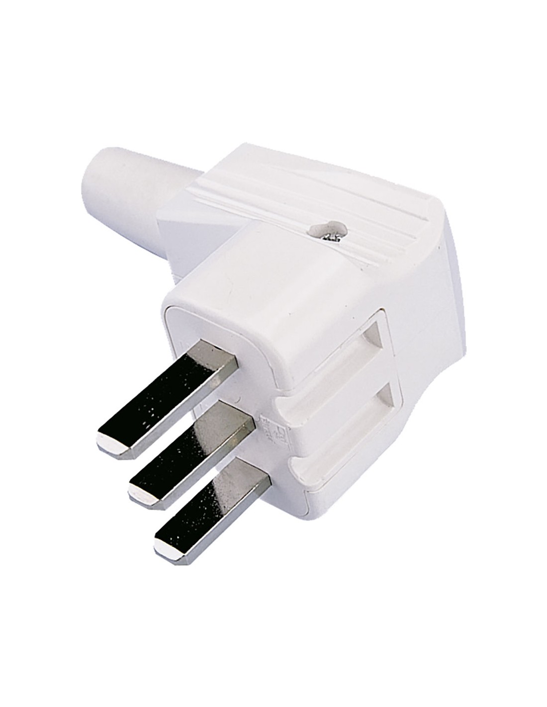 Clavija blanca bipolar para cocinas con toma de tierra lateral. 25a 250v. dimensiones 85 x 85 x 52 mm