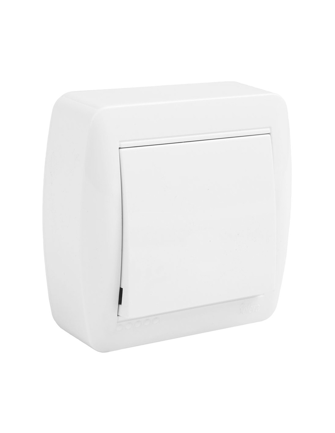Pulsador superficie, blanco, 10 a 250 v~ serie mural, con embornamiento por tornillo 74 x 72 x 28 mm