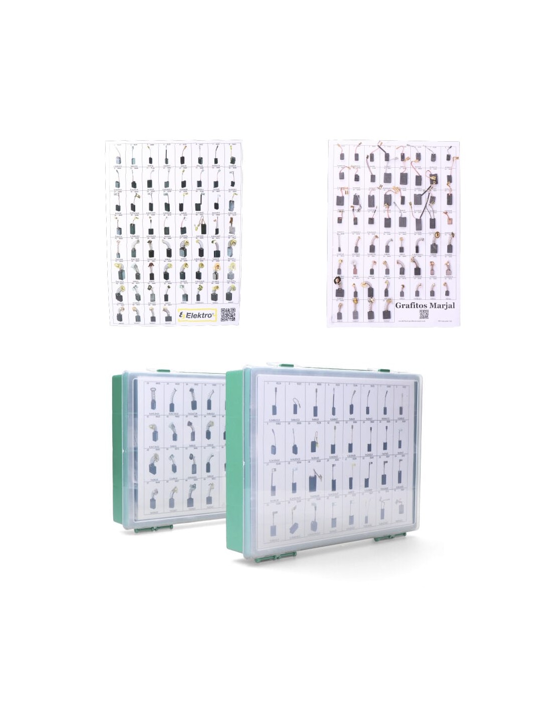 Expositor 60 escobillas de carbon mas vendidas (120 juegos), incluye un poster plastificado y un muestrario, busca tu modelo de escobilla en: https://grafitosmarjal.com/