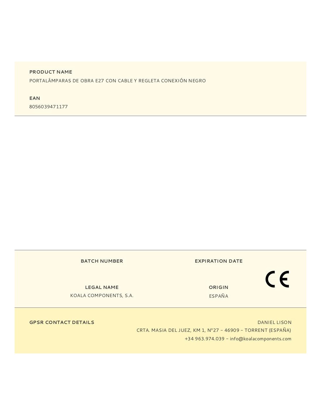 Portalámparas de obra negro e27 con cable h03vvh2-f 2 x 0,75 mm y regleta conexión