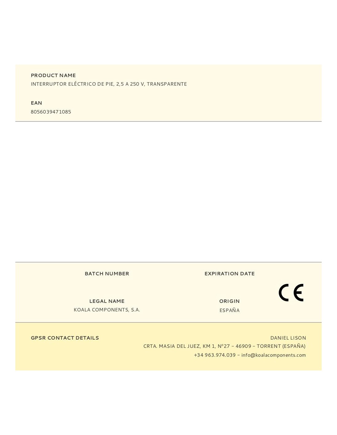 Interruptor eléctrico de pie, 2,5 a 250 v, transparente, ø65 x 30 mm