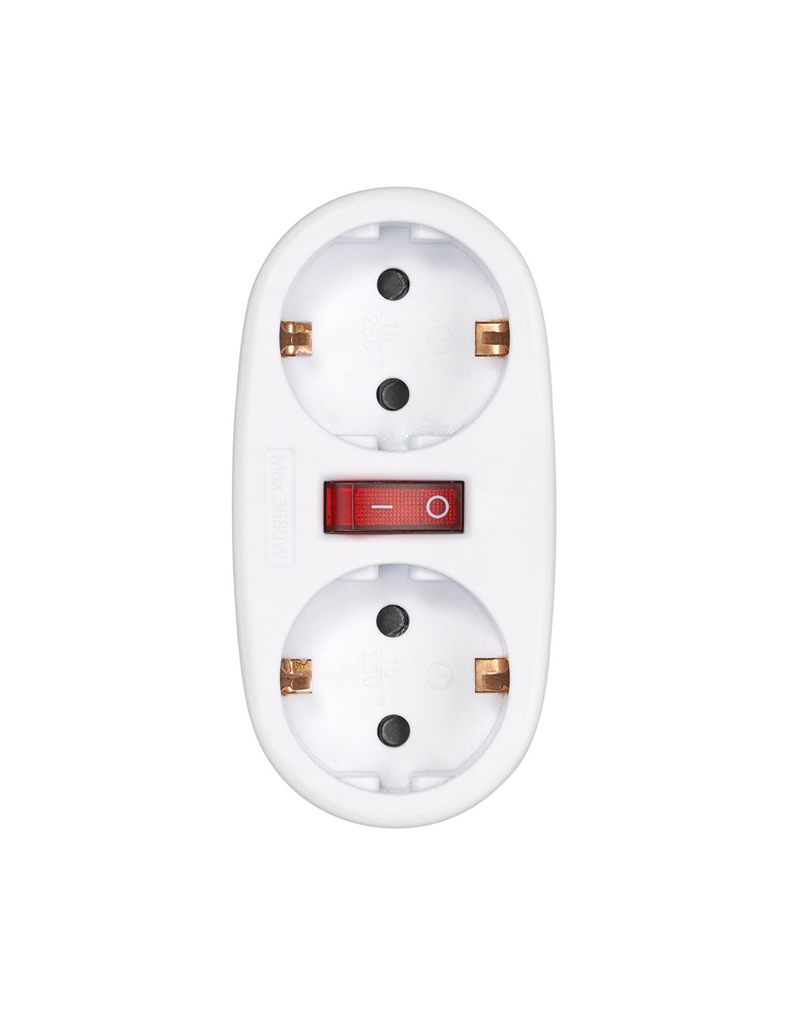 Adaptador 2 tomas schuko frontal con interruptor permite controlar de forma práctica y segura dos dispositivos eléctricos desde un único interruptor, 16 a 250 v~, blanco