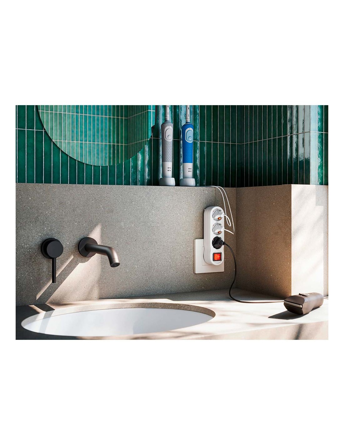 Adaptador 3 tomas schuko frontal con interruptor permite controlar de forma práctica y segura dos dispositivos eléctricos desde un único interruptor, 16 a 250 v~, blanco