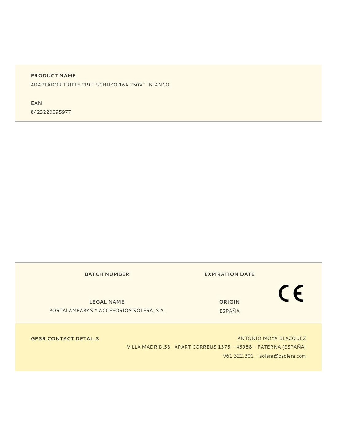 Adaptador triple 2p+t schuko 16 a 250 v~ blanco