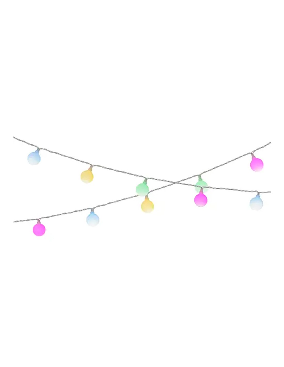 Guirnalda solar recargable, 30 leds, luz multicolor colores pasteles, para exterior ip44, cable transparente, panel solar 2v, función fija. batería reemplazable aa de 1,5v. autonomía 6 h, con interruptor. cable 2 m, distancia entre leds 10 cm, longitud total 2,9 m