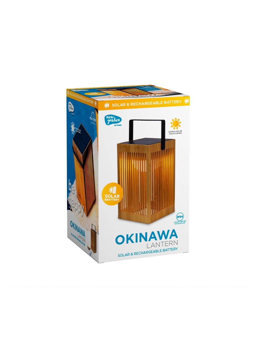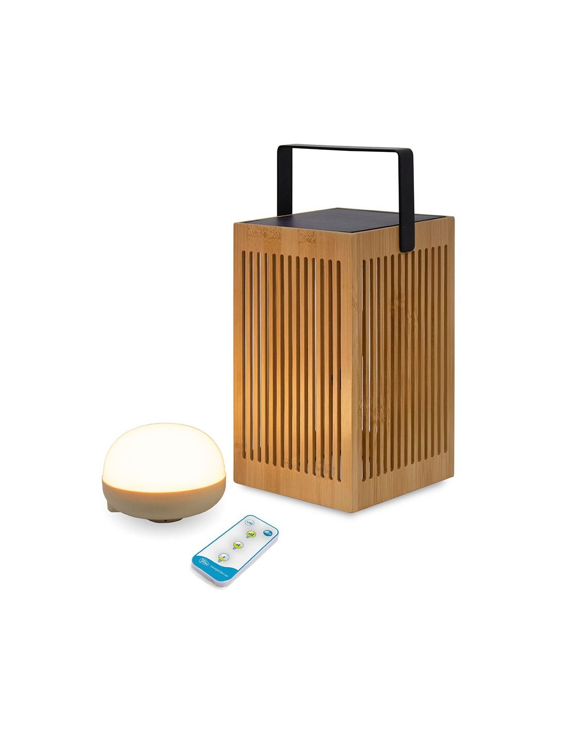 El farol de mano okinawa lantern, está fabricado en fibras naturales de bambú. con diseño orgánico y de líneas rectas, incorpora un panel solar para su carga, asa fabricada en metal, incluye bombilla portátil recargable cherry de luz cálida que no requiere instalación, tan solo tendrás que acercarla a la parte posterior de la placa solar y se adherirá debido a su base imantada o se puede colgar gracias al gancho de sujeción integrado, grado de protección ip54. incluye mando a distancia con alcance de 3 m, para poder encender, apagar y regular su intensidad, dispone de 900 lm y una autonomía entre 6 y 20 h, cuenta con una batería de litio recargable con usb-c incluido, 14 x 14 x 24 cm