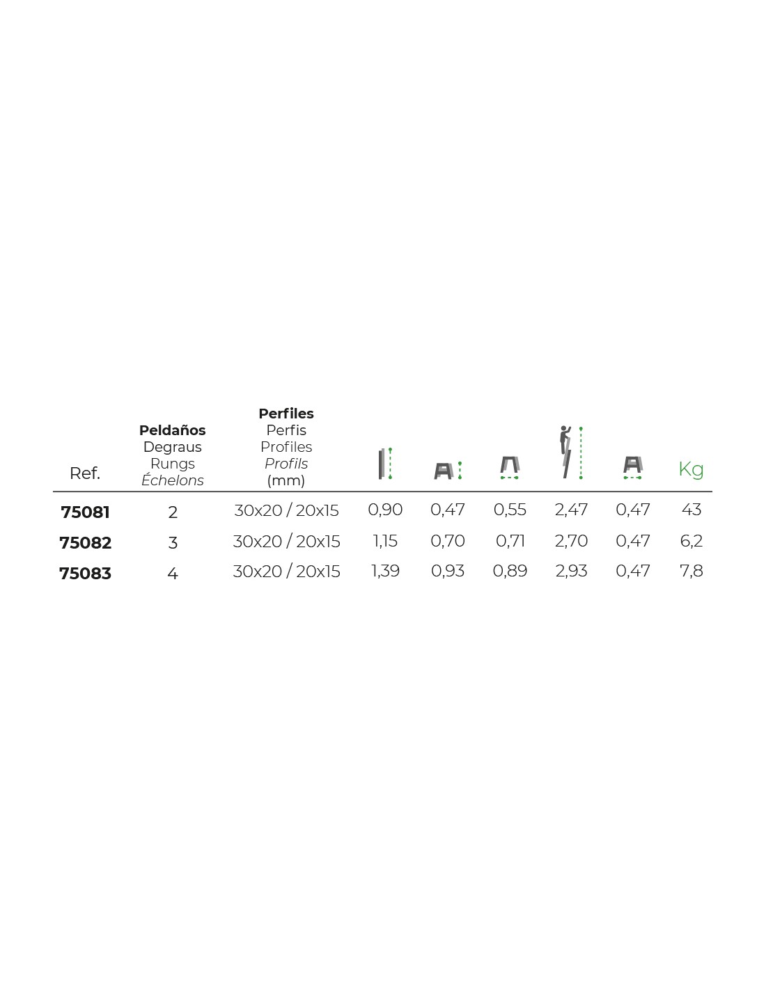 Escalerilla de acero 3 peldaños. plataforma de acero y alfombrilla antideslizante de 27,5x17,5cm., sistema de seguridad antiapertura, conteras de pe con relieves antideslizantes. dimensiones: 47x71x105cm. altura del último peldaño 0,70 cm