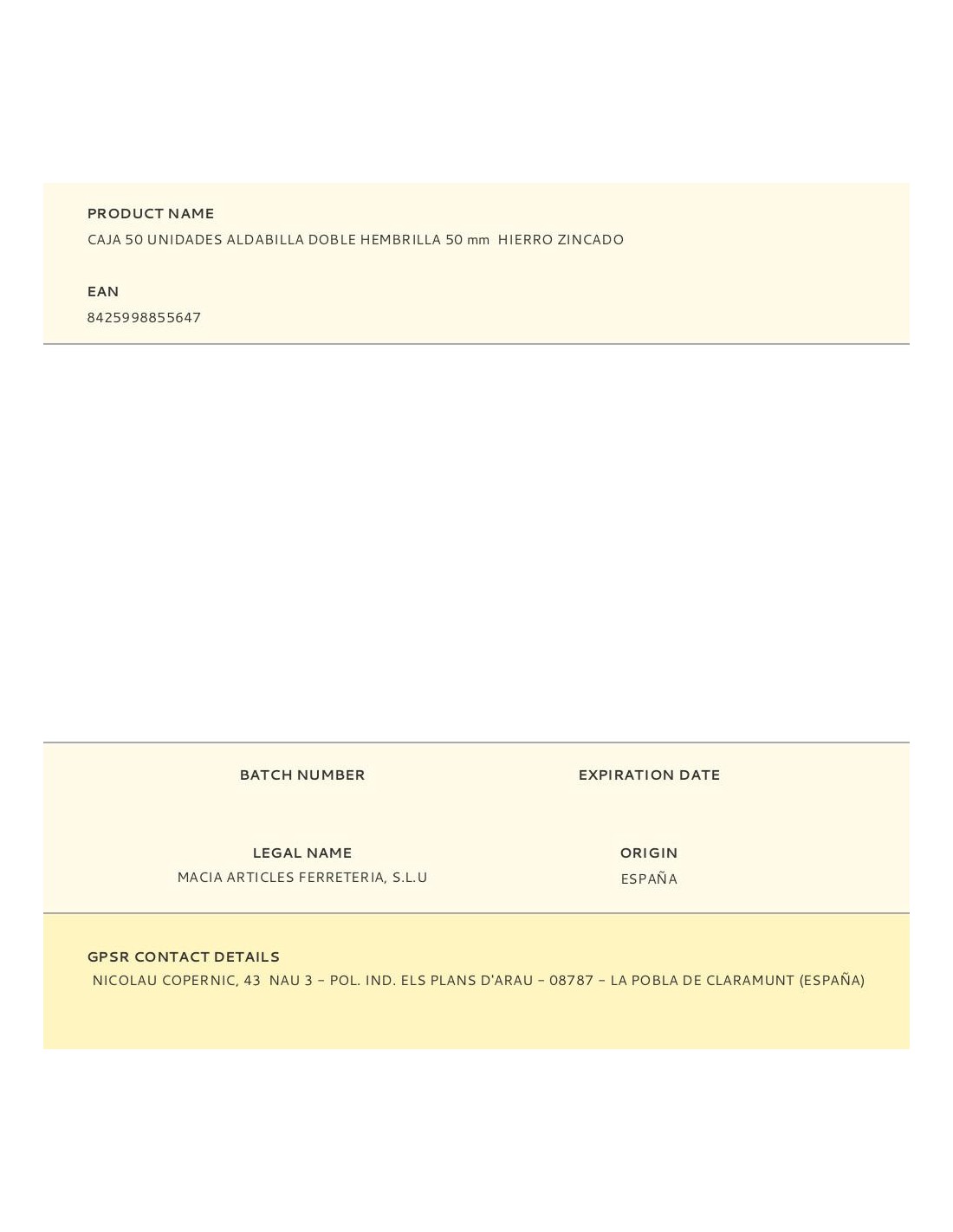 Caja 50 unidades aldabilla doble hembrilla 50 mm hierro zincado